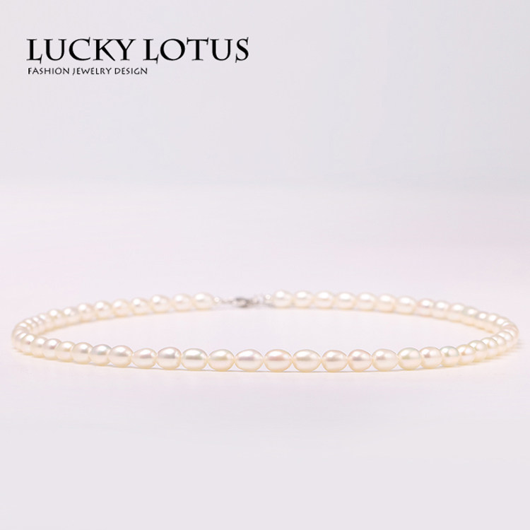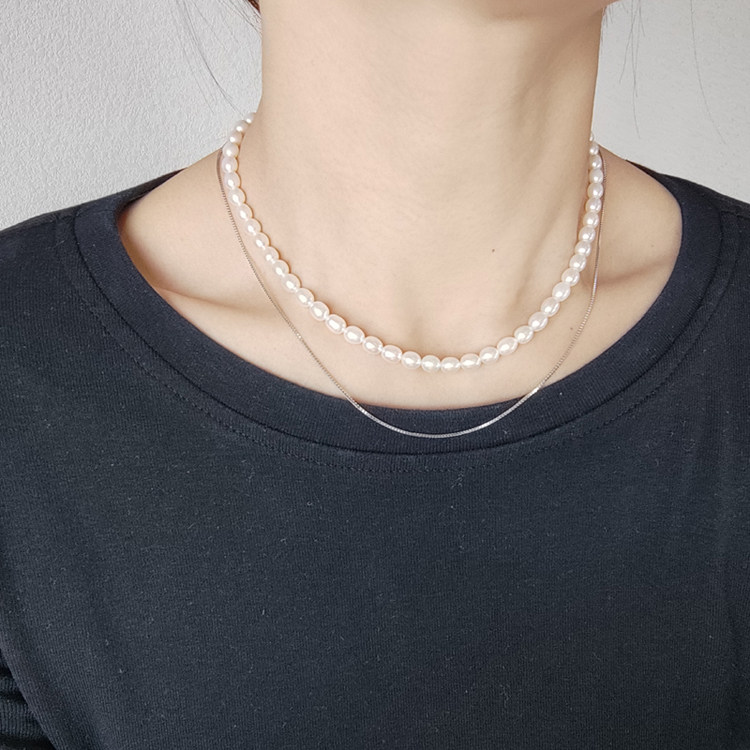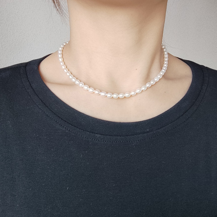 珠寶輕奢純銀天然淡水珍珠項鍊橢圓米珠鎖骨鍊女飾免運