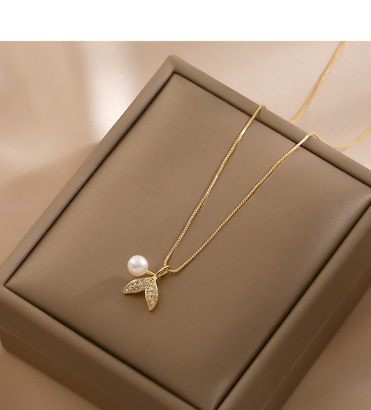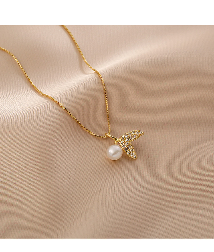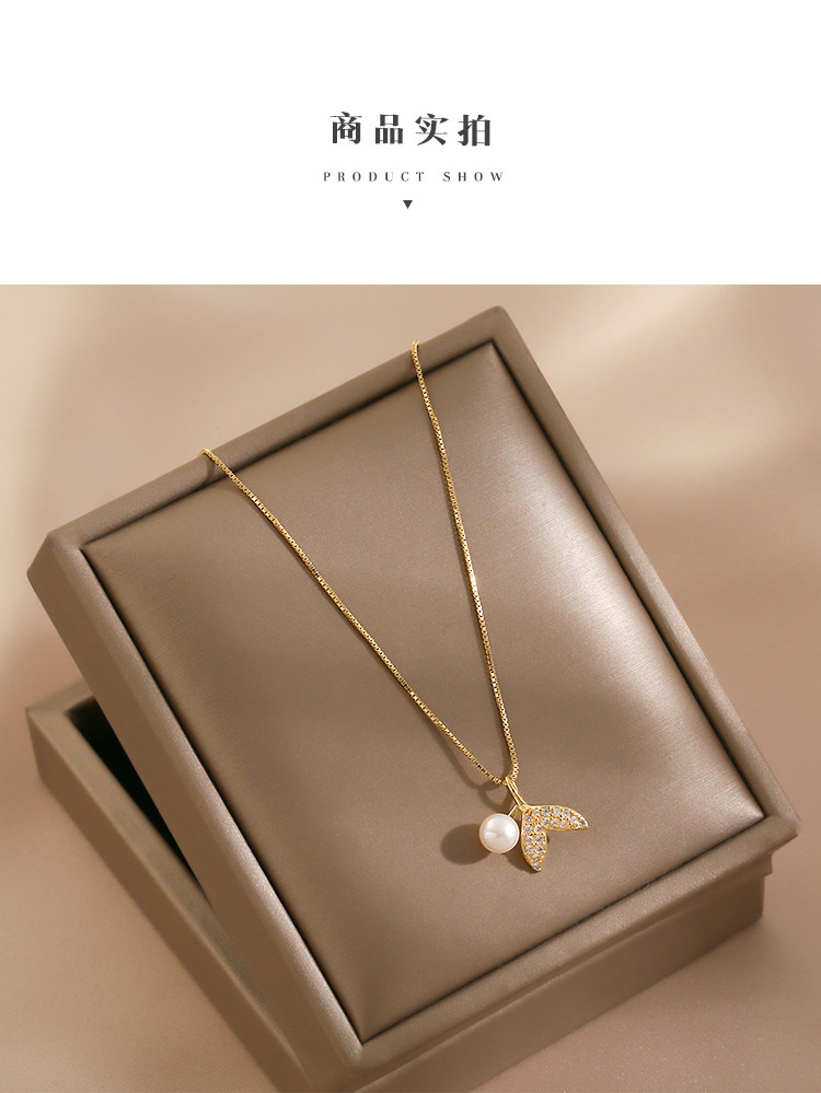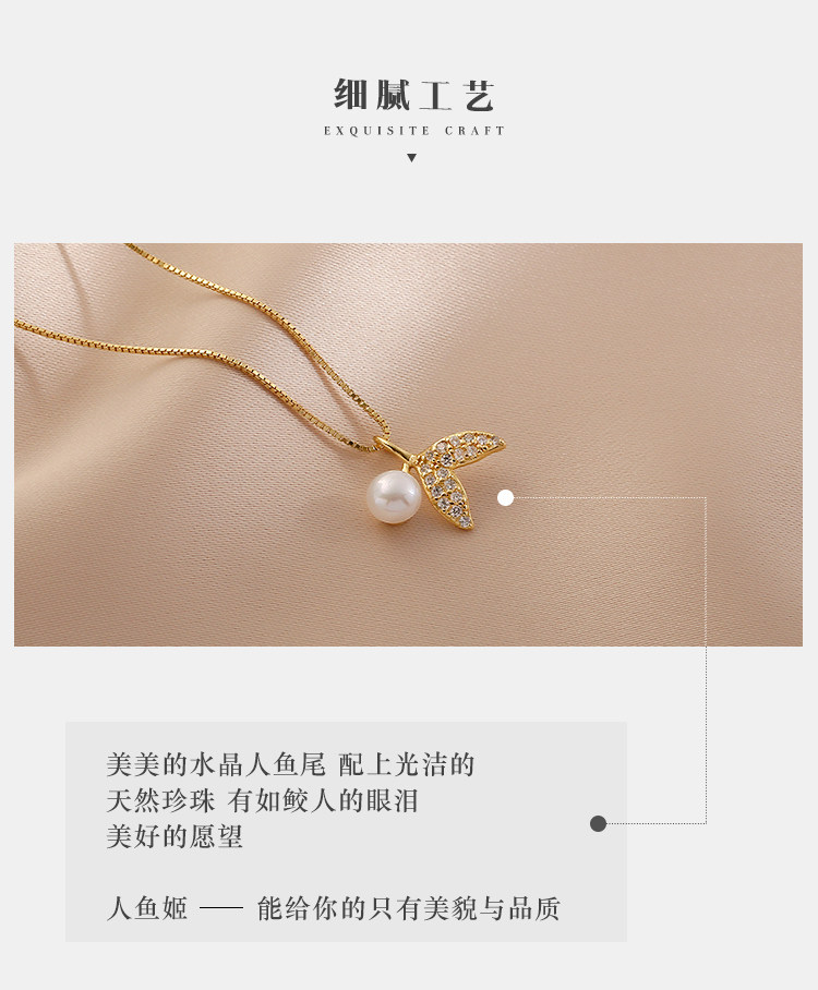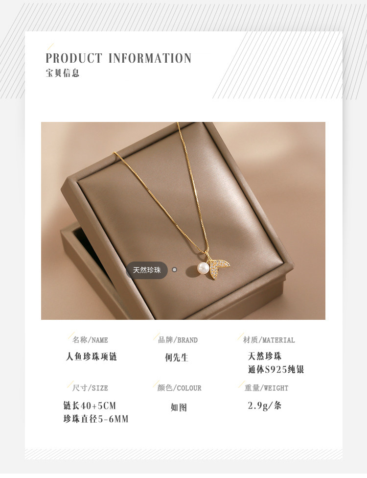 天然珍珠魚尾項鍊輕奢小眾鎖骨鍊女S925純銀氣質送禮高級感