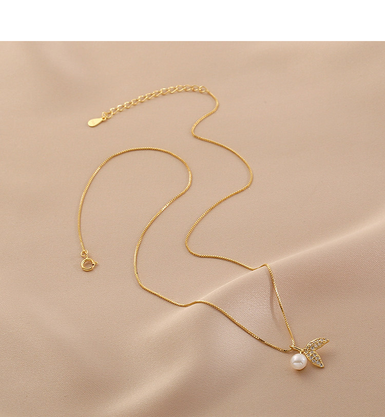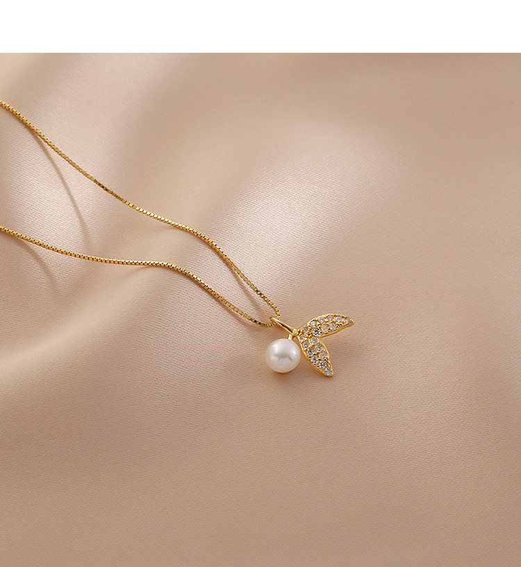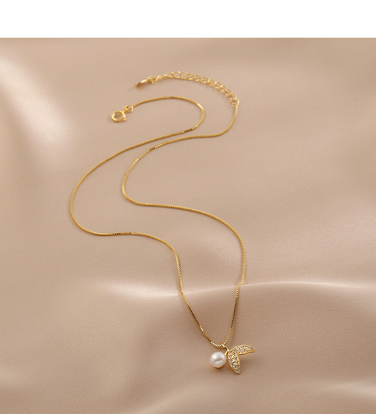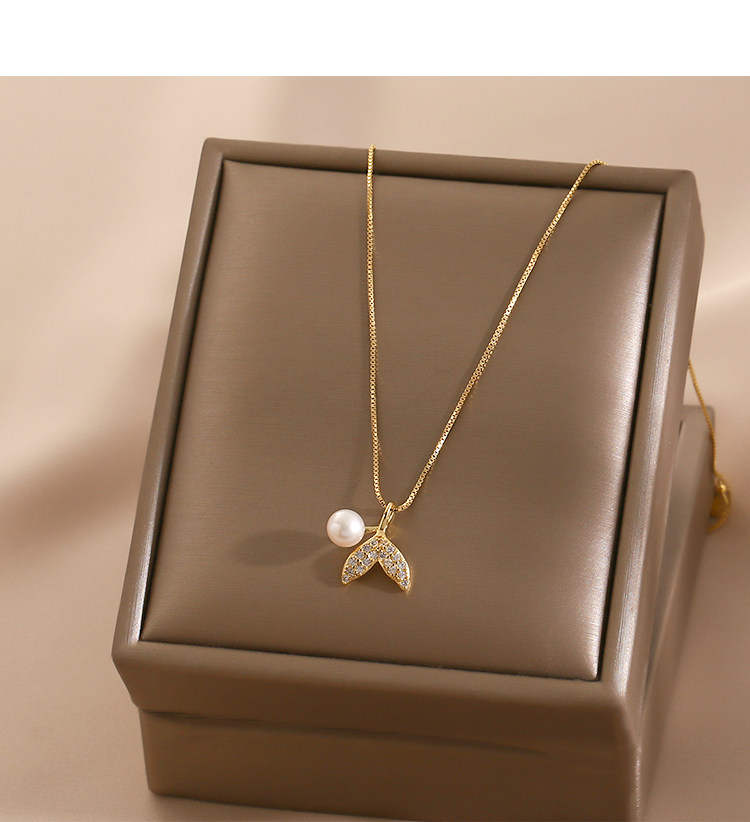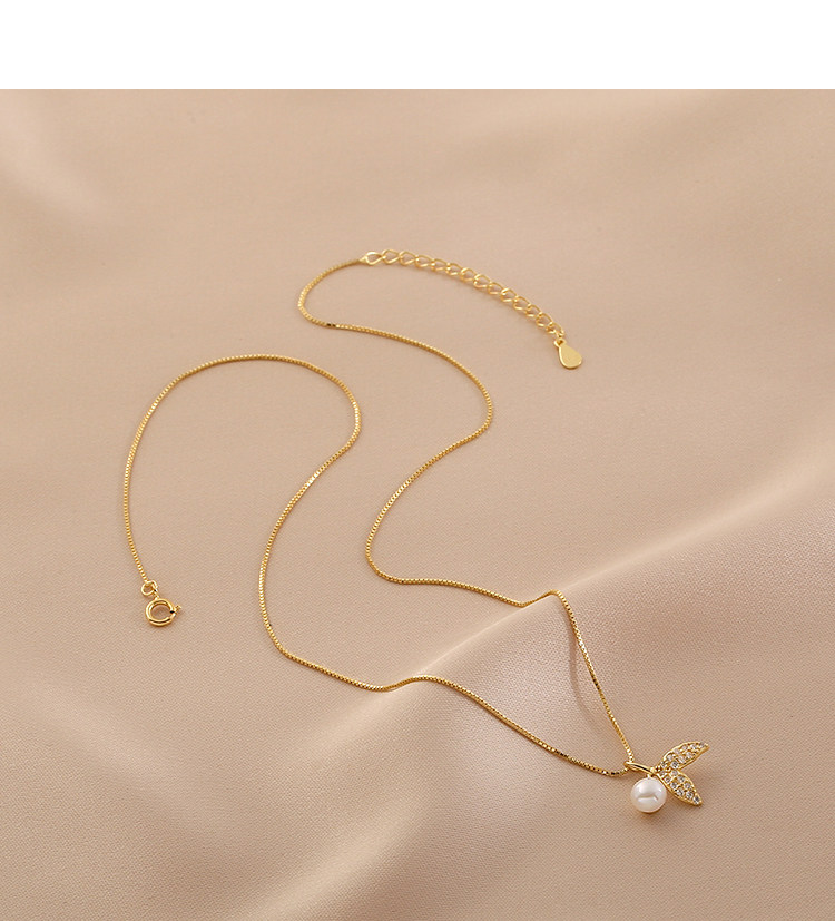 天然珍珠魚尾項鍊輕奢小眾鎖骨鍊女S925純銀氣質送禮高級感