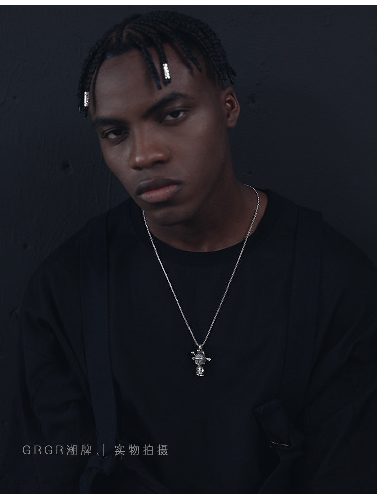S925 純銀潮牌復古項鍊男女嘻哈ins百搭個性吊墜毛衣鎖骨鍊