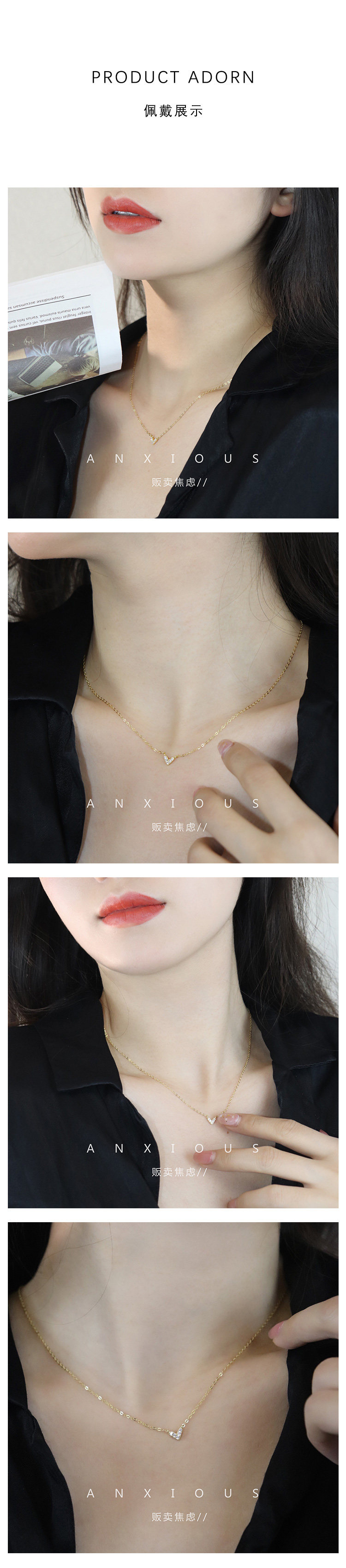 小巧細閃愛心小眾精致通勤高級感項鍊女純銀頸鍊鎖骨鍊