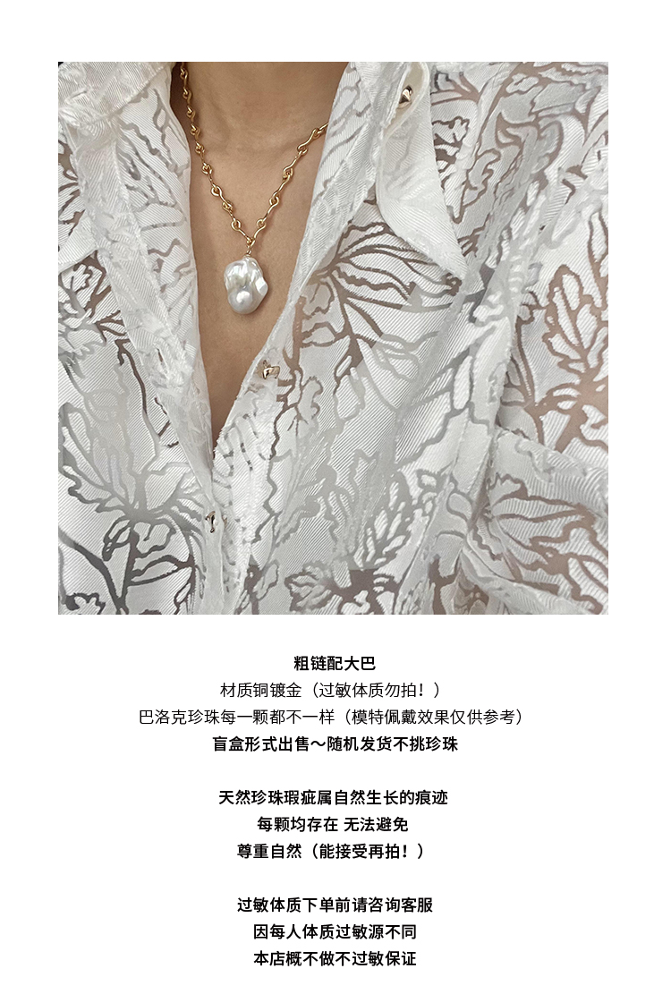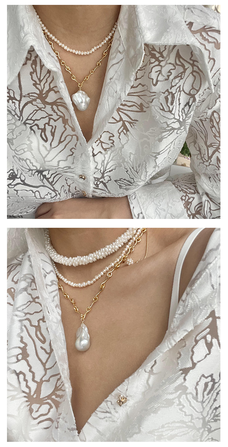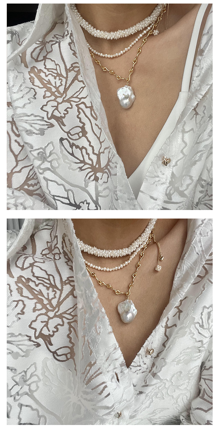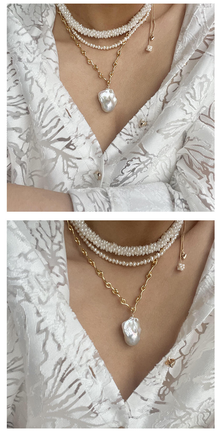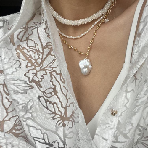 天然異形巴洛克珍珠項鍊法式復古氣質鎖骨鍊女輕奢小眾設計感