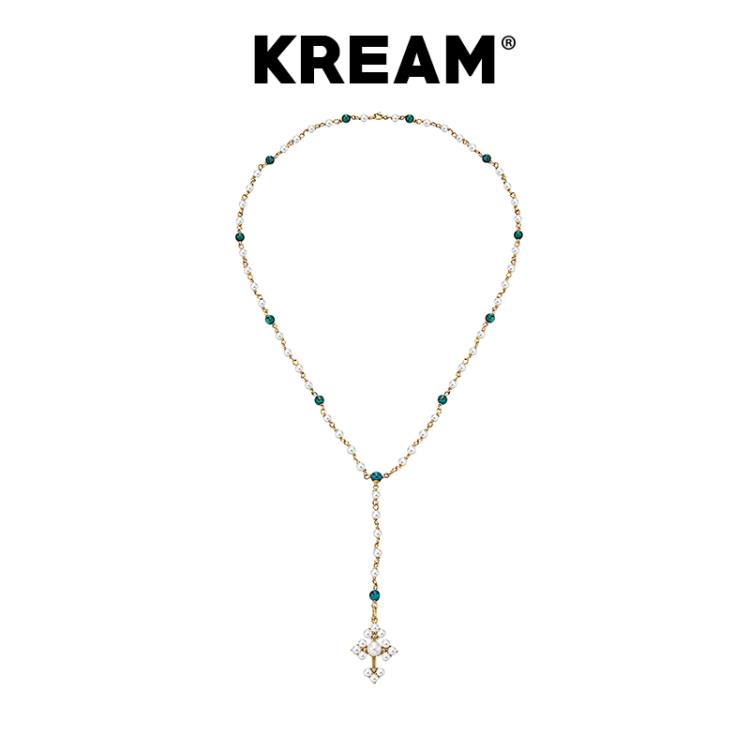 原創 14K包金 復古 綠松珍珠十字形項鍊男嘻哈女同款