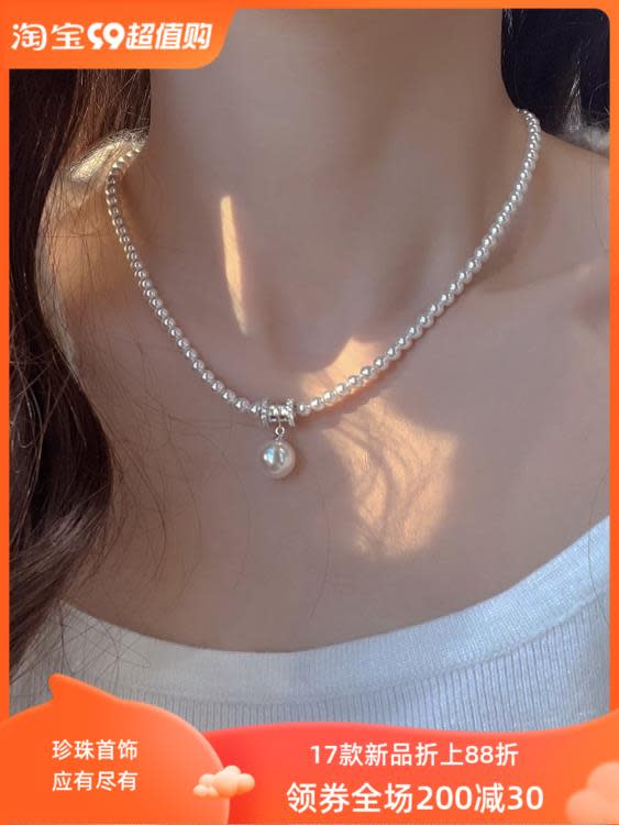 小蠻腰珍珠簡約氣質百搭輕奢S925銀真多麻灰高級感項鍊女