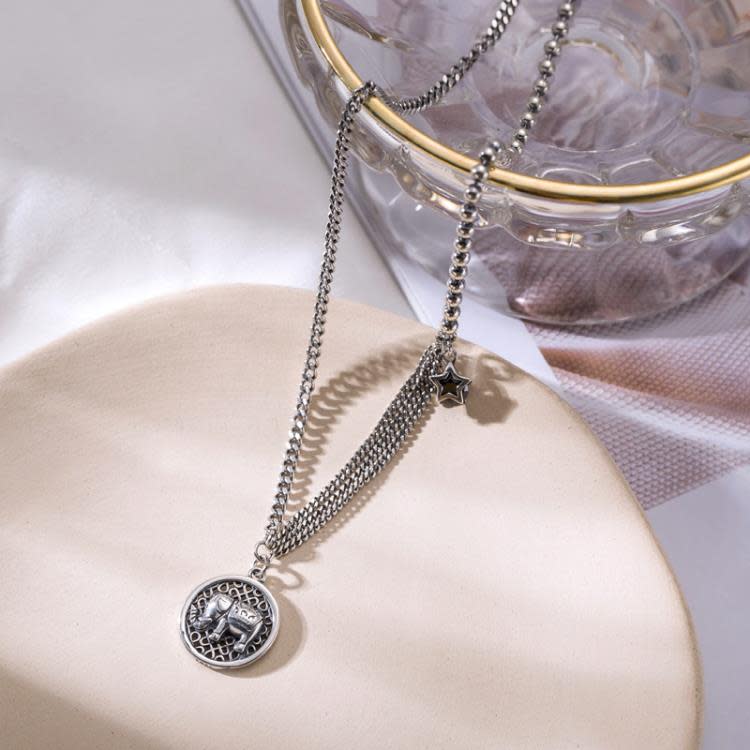 韓國925純銀大象圓牌項鍊女朋克不對稱個性鎖骨鍊ins冷淡風