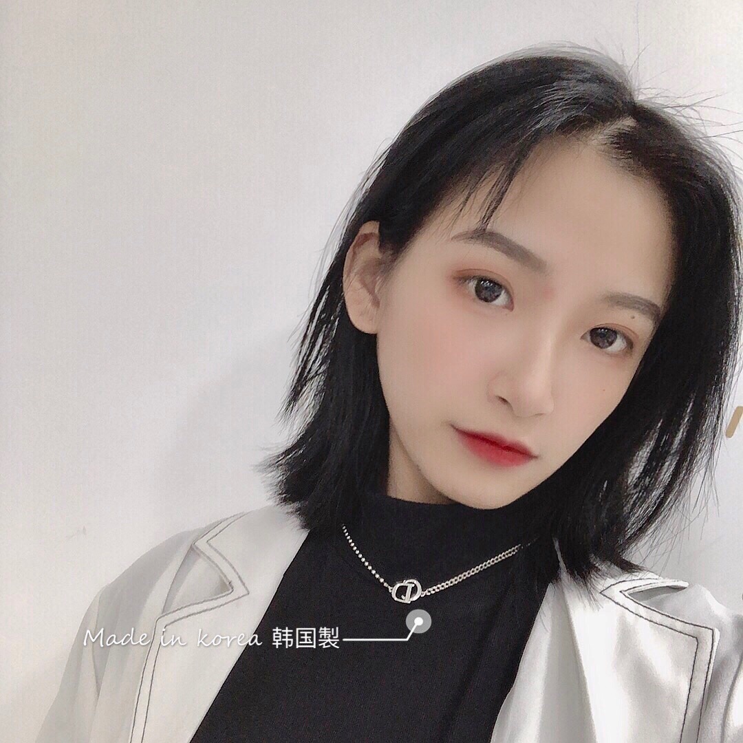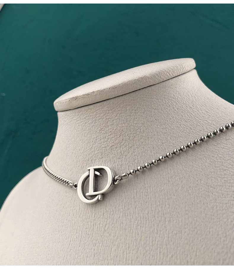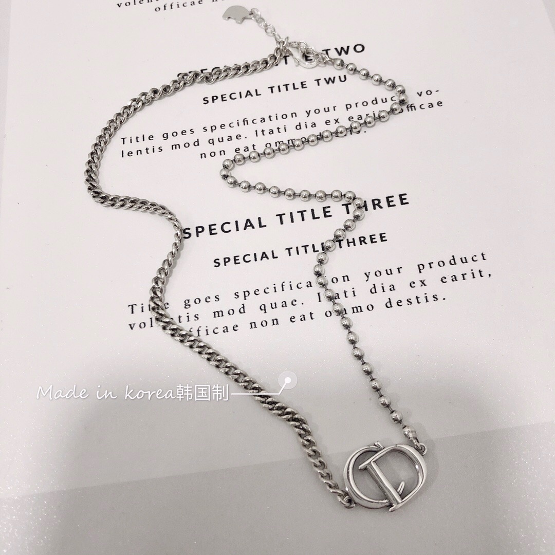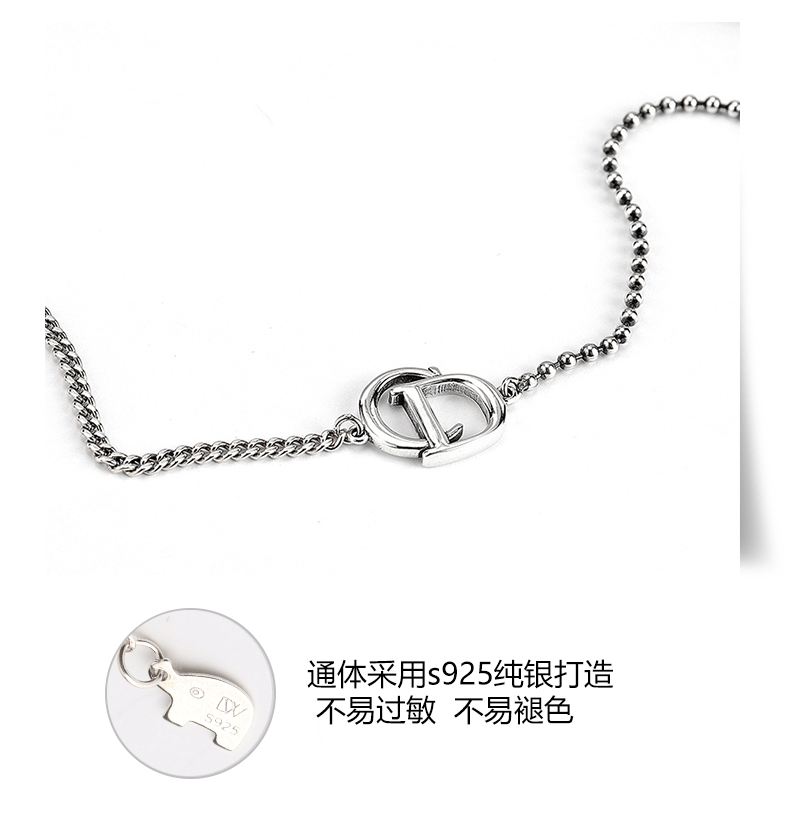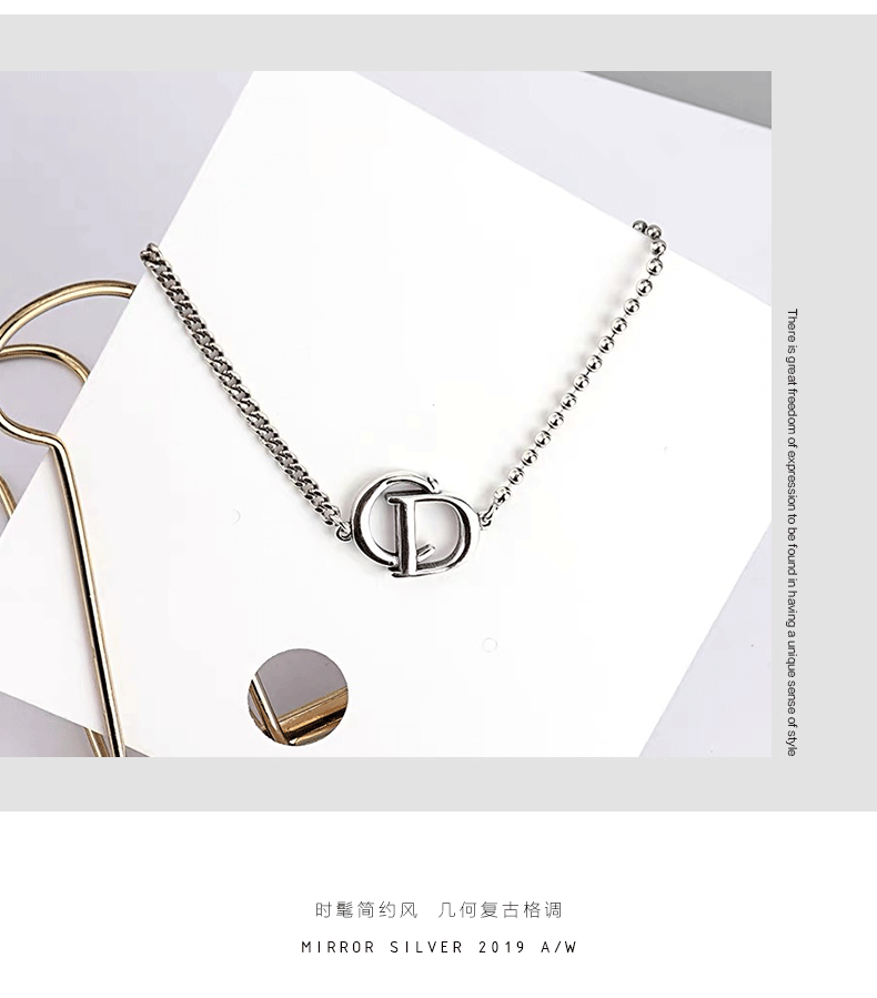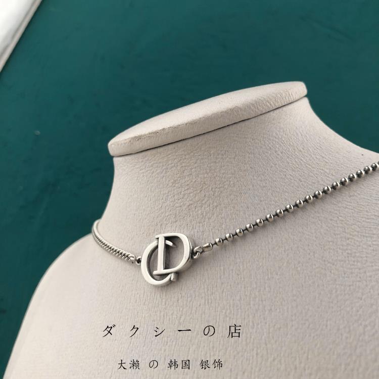 韓國925純銀項鍊女CD字母不對稱短款鎖骨鍊頸鍊搭配ins簡約