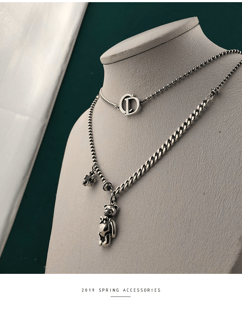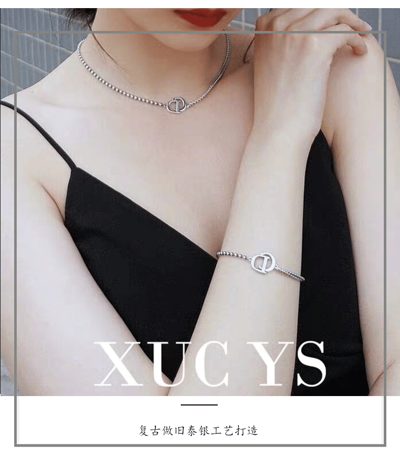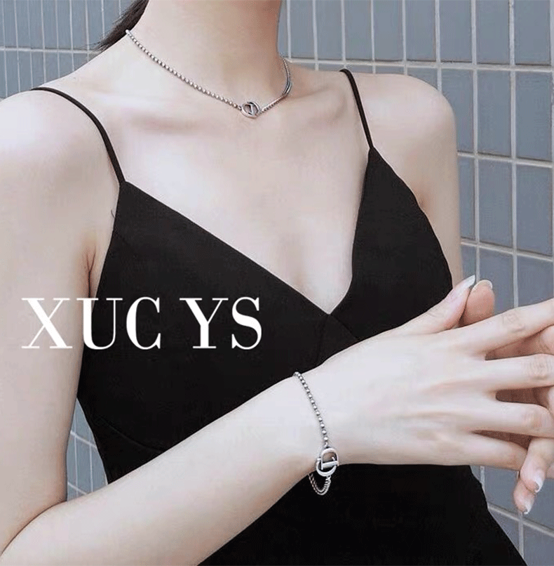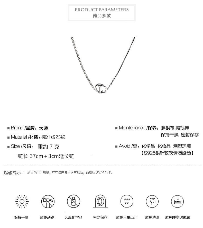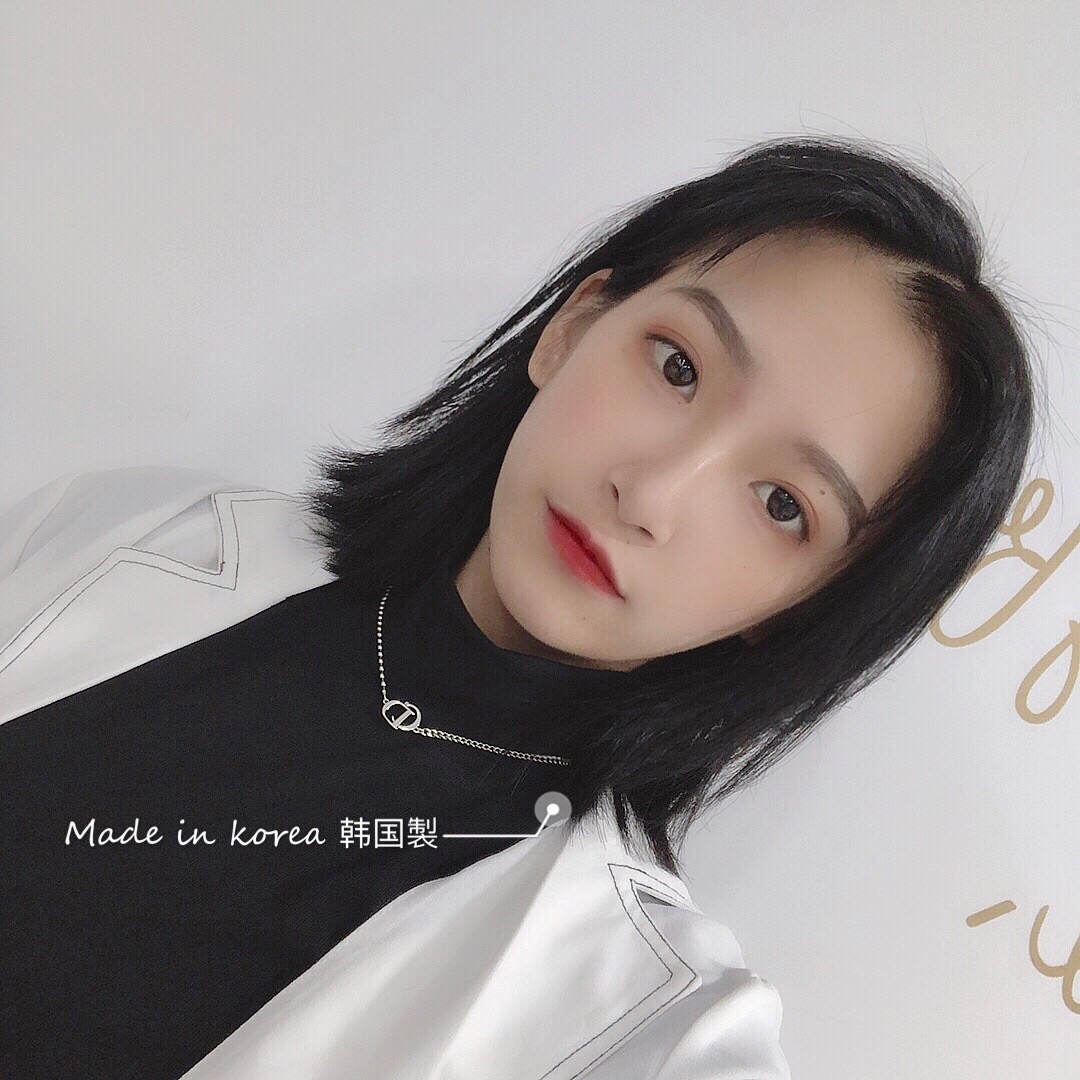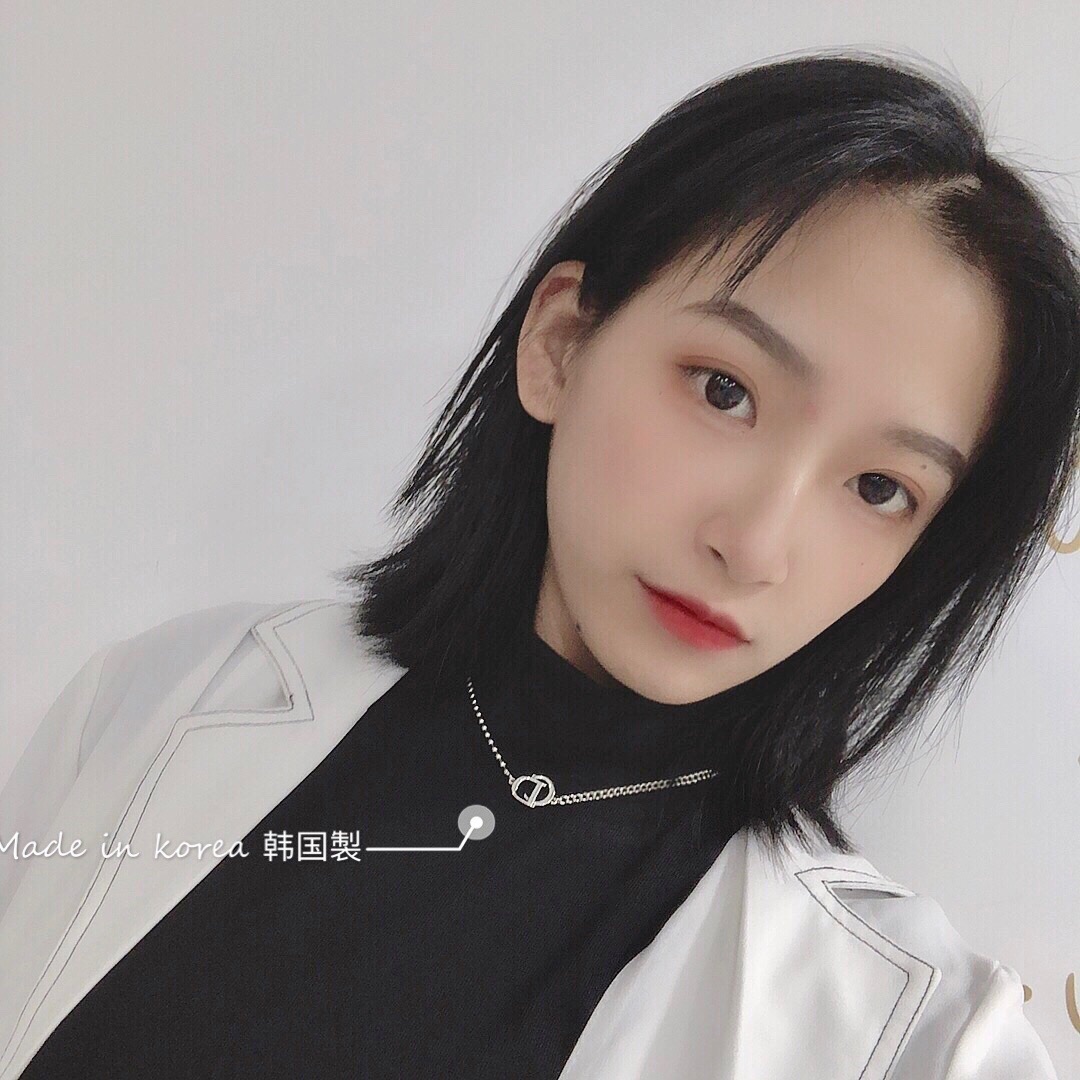 韓國925純銀項鍊女CD字母不對稱短款鎖骨鍊頸鍊搭配ins簡約