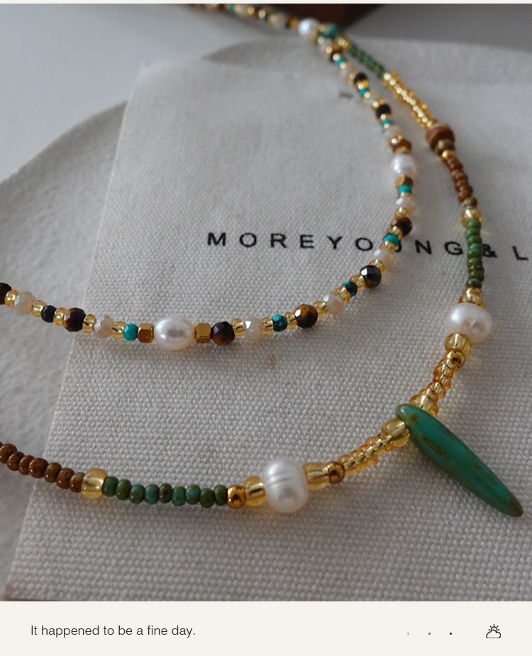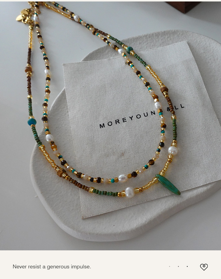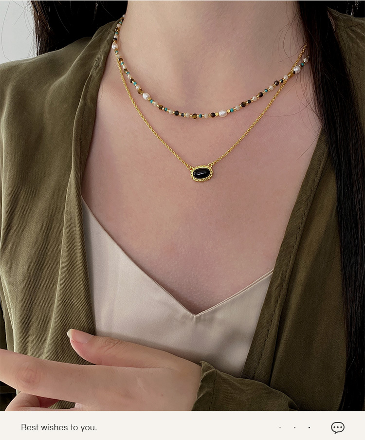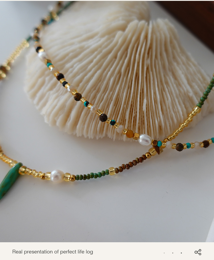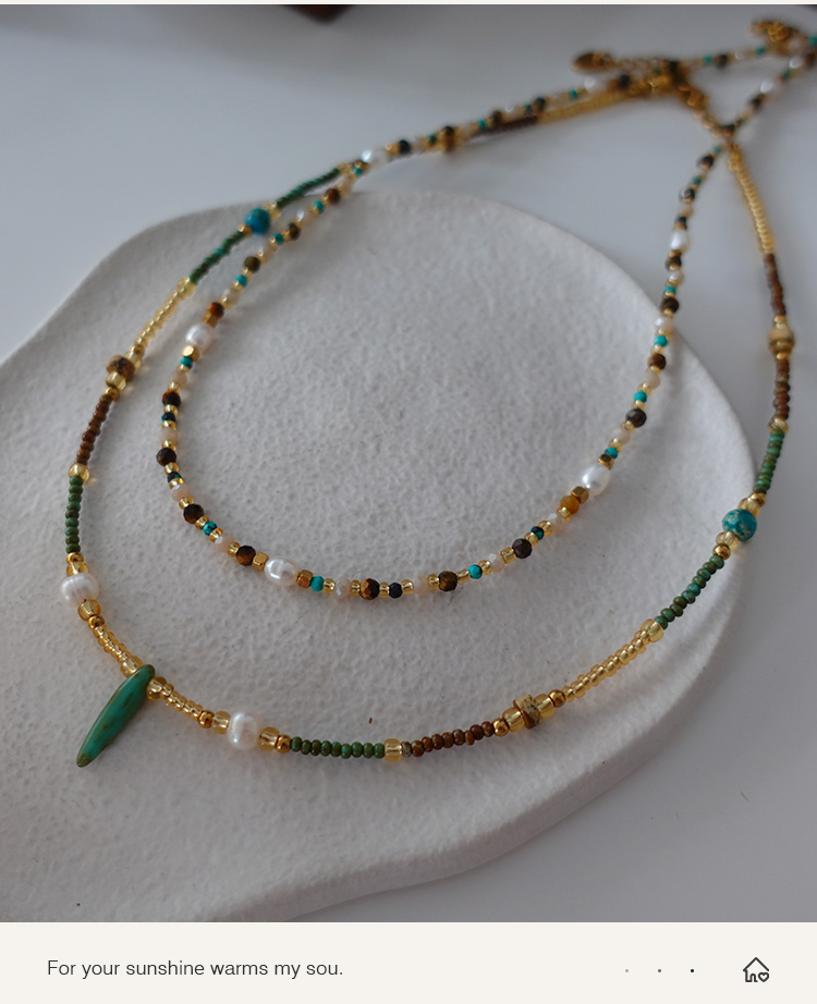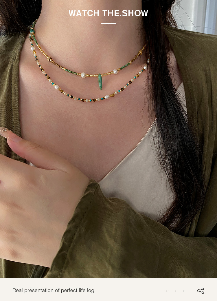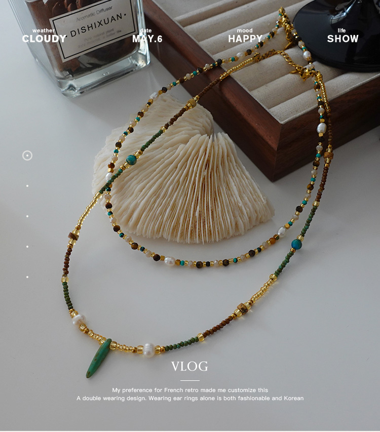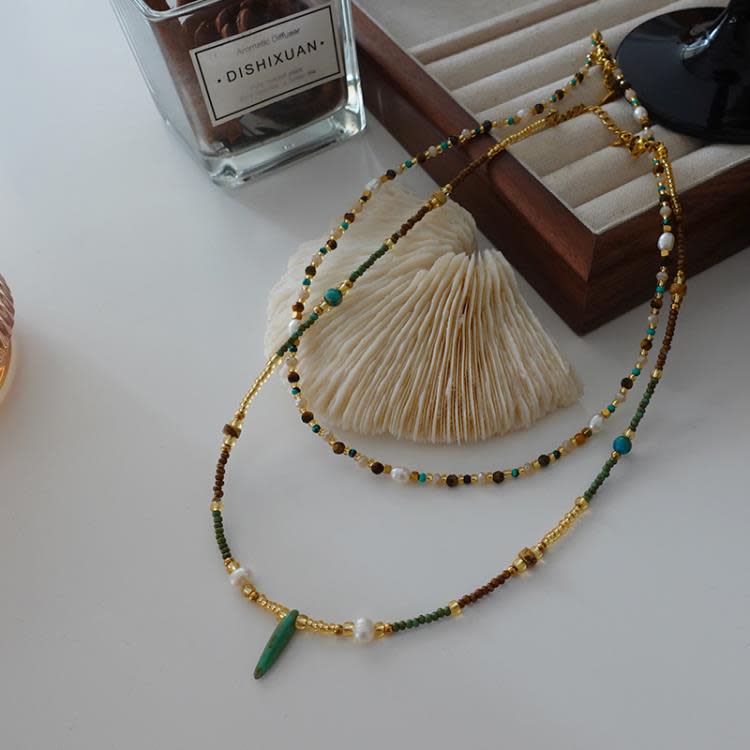 新中式項鍊新款爆款小清新復古串珠天然石頸鍊女高級感鎖骨鍊