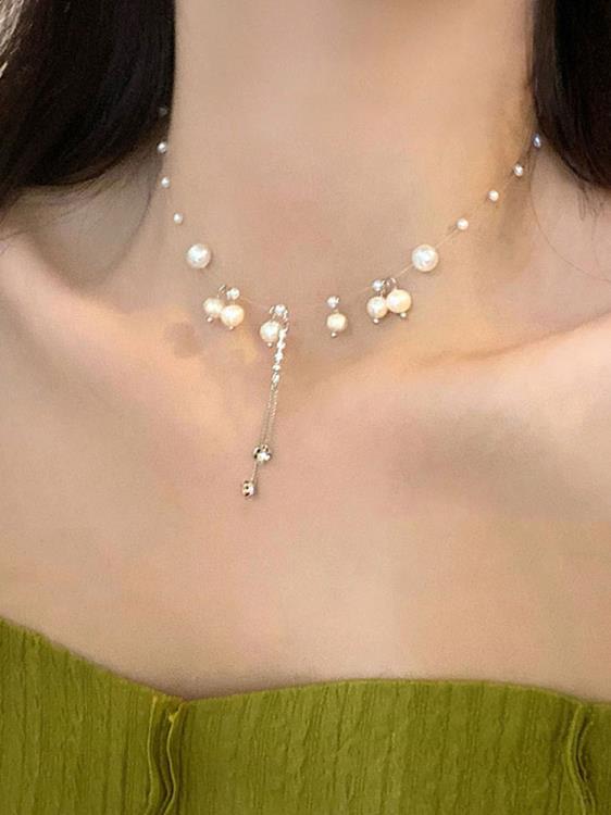珍珠流蘇項鍊女輕奢高級設計感小眾氣質時尚頸鍊鎖骨鍊配飾
