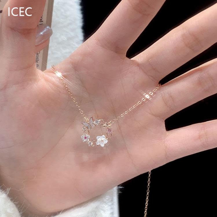蝴蝶花朵吊墜項鍊氣質新款網紅爆款小香風不掉色鎖骨鍊上衣女