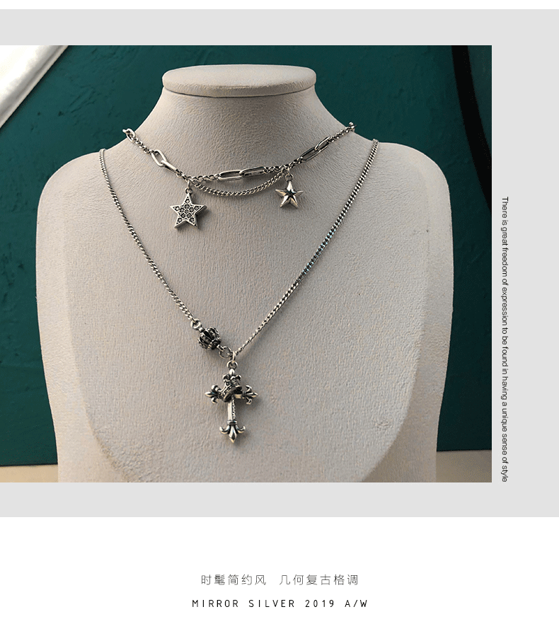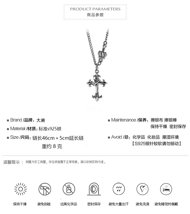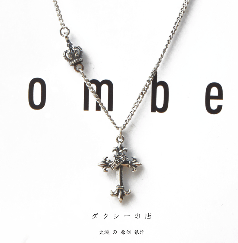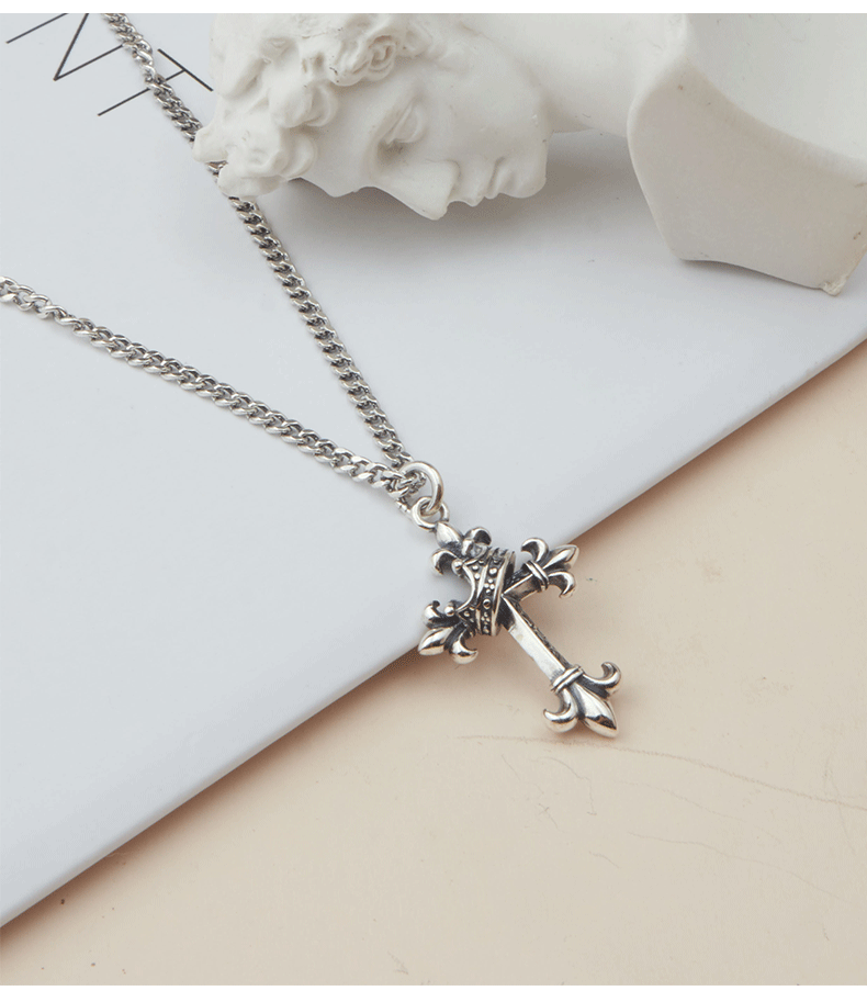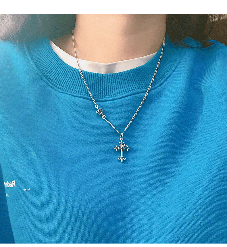 韓國飾品925純銀皇冠項鍊復古十字架毛衣鍊歐美ins嘻哈朋克