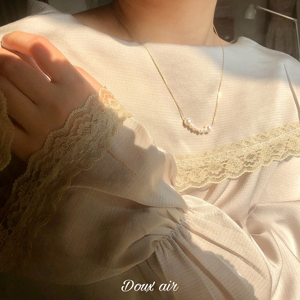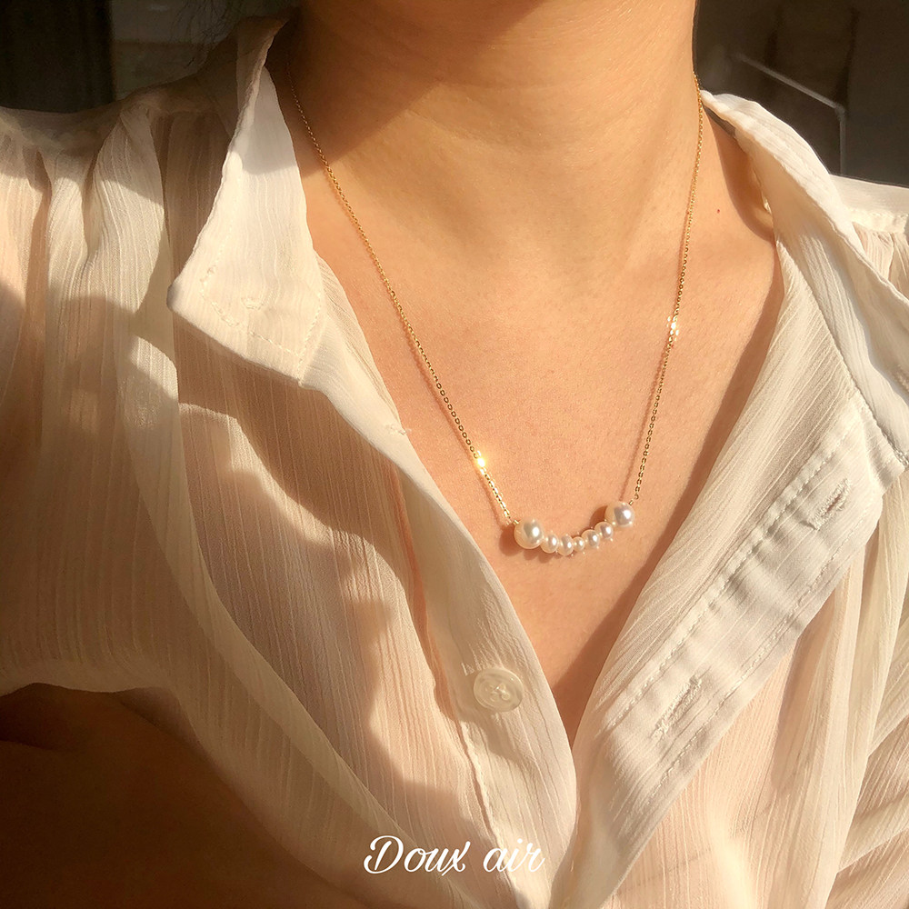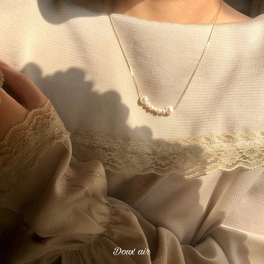 絕甜空氣/笑臉項鍊女珍珠簡約氣質鎖骨鍊手工s925銀網紅微笑項鍊