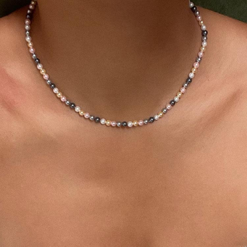拼色串珠項鍊黃銅材質韓國時尚復古鎖骨鍊高級百搭日常