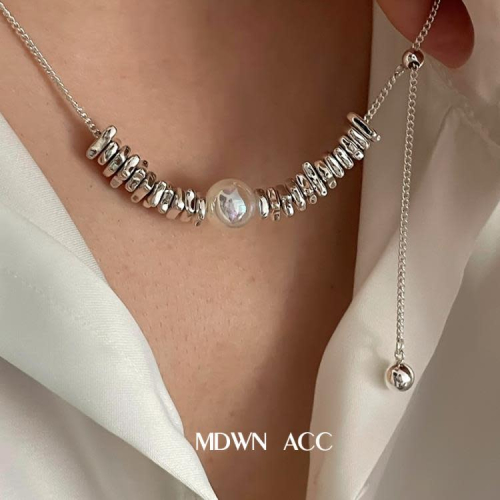 霓虹珠 925純銀項鍊女 小眾簡約流行碎銀子時尚個性流蘇鎖骨鍊ins
