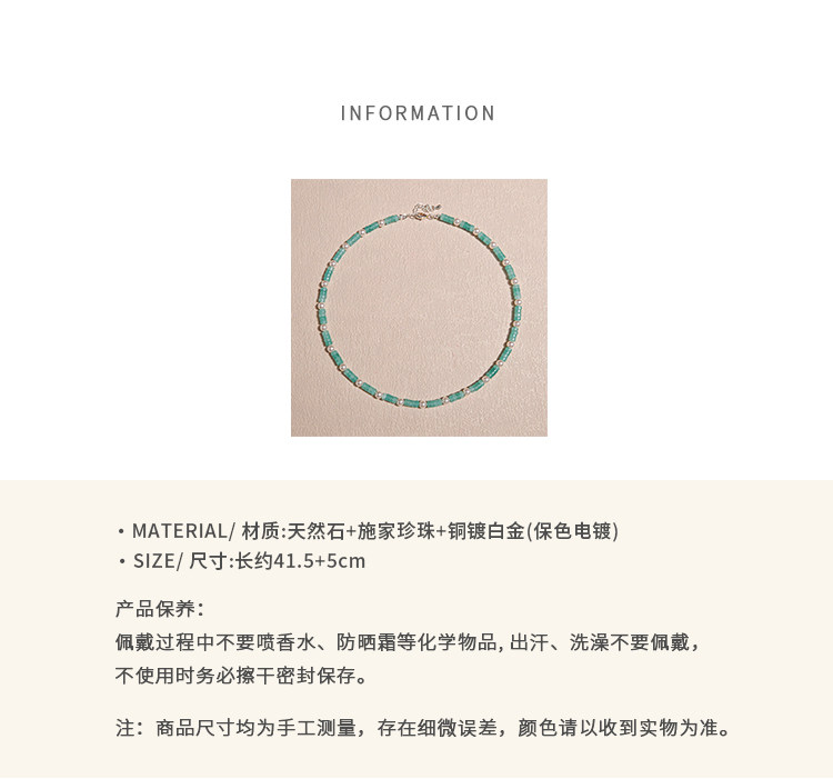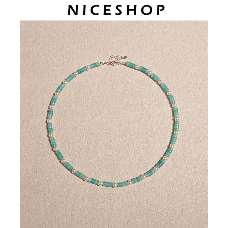 自制一抹湖藍天然石施家珍珠串珠項鍊小眾手工高級鎖骨鍊