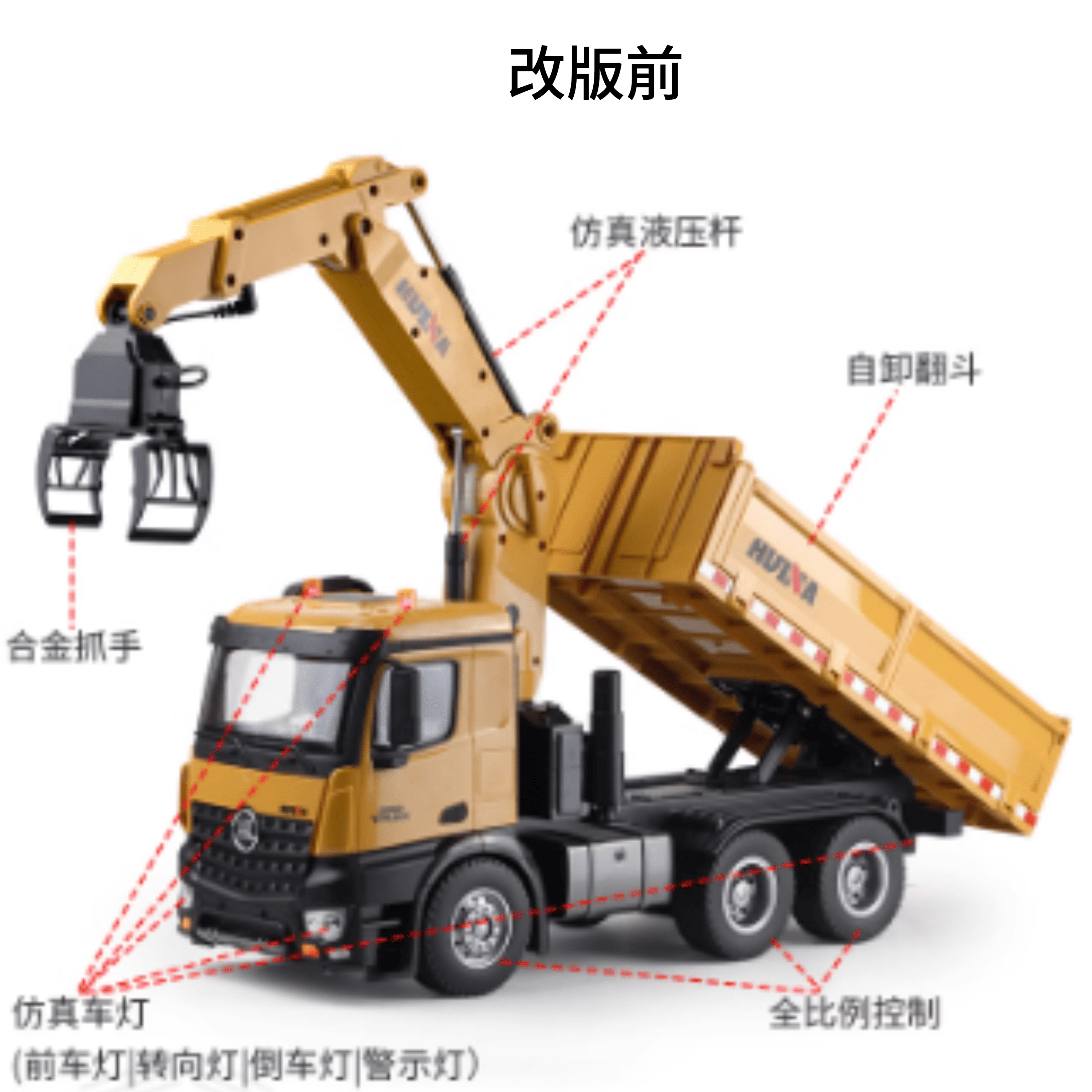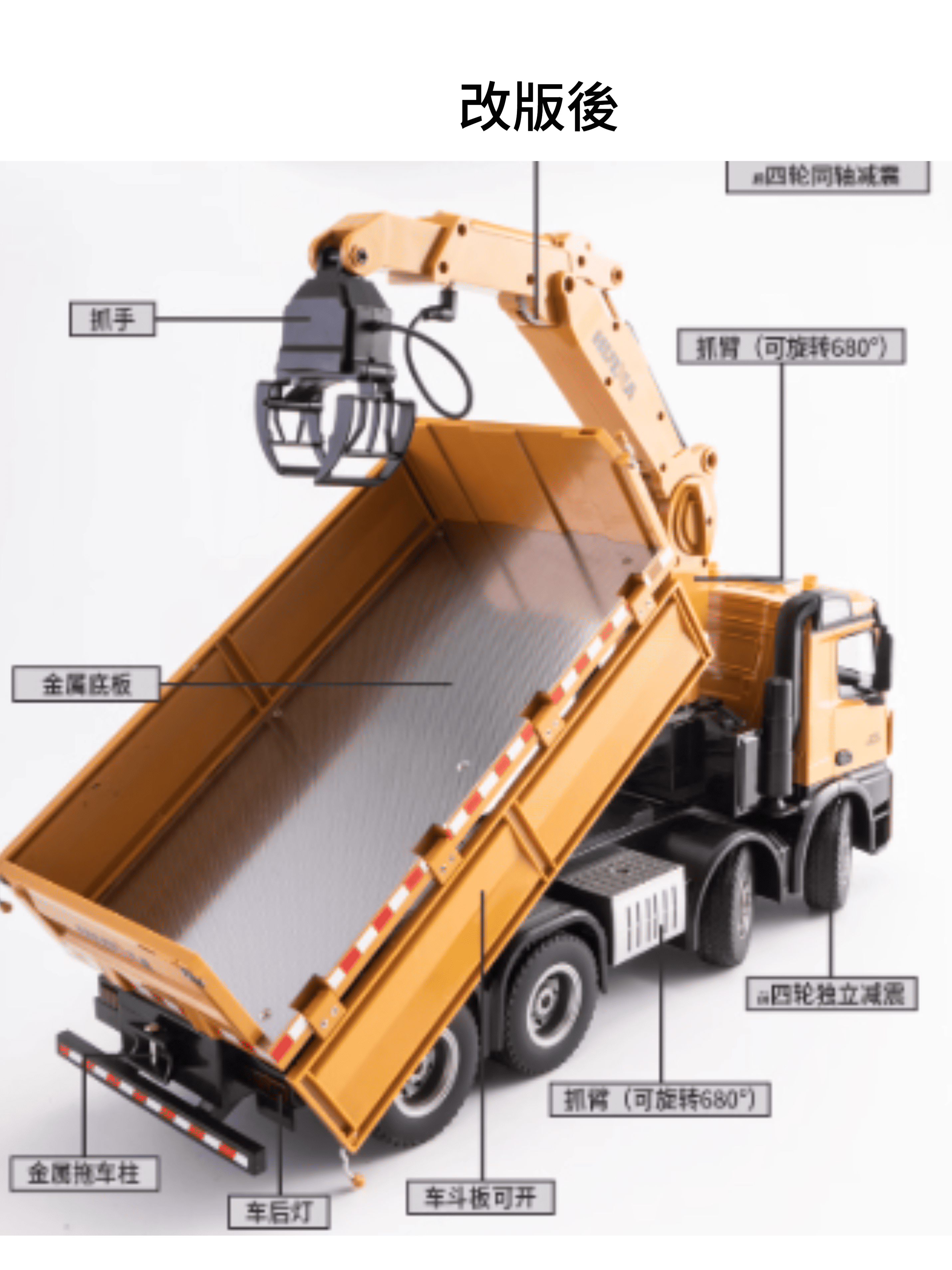 前進後退,左右轉彎,前後車燈 夾子抓取 夾子 可隨意 上下 左右轉動 後斗升降
