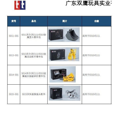 雙鷹 E010 E111 1:14 Volvo 全合金挖土機 2.4G 配件專區 (E010電缸版/E111油壓版)