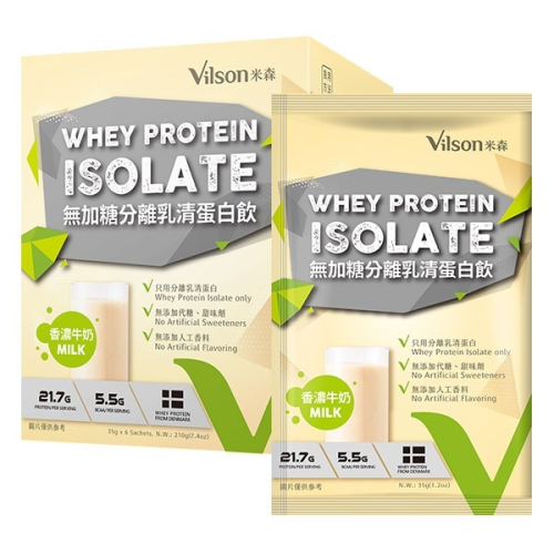 - 米森嚴選丹麥百年乳製品大廠製造的分離乳清蛋白粉,並搭配米森特選紐西蘭全脂奶粉,濃郁奶香味讓您更好入口,堅持無加糖、無化學調味,每份蛋白質達21.7公克,是重訓者的最佳補充品,可依照不同族群者一日所需蛋白質攝取,隨手包設計攜帶方便,讓您隨時可補充蛋白質。