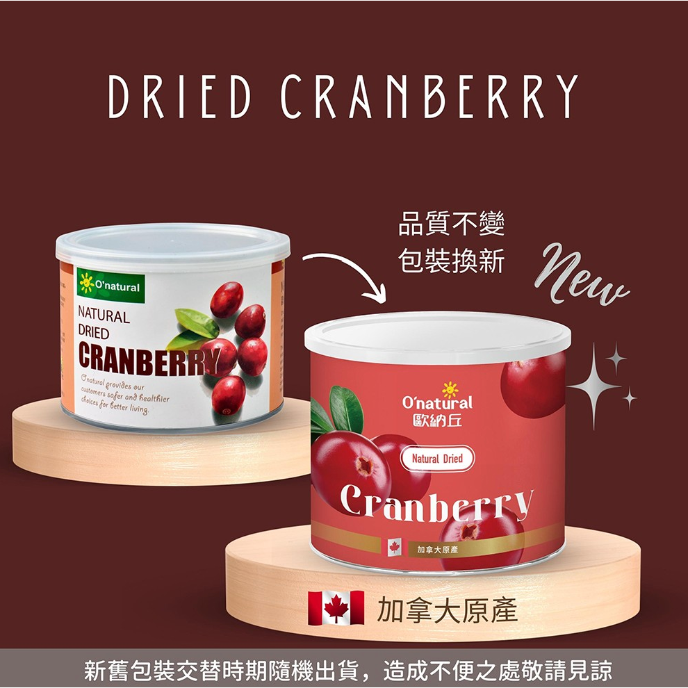 蔓越莓是全世界稀有的水果,營養和水分都非常高的水果,有「紅寶石」之稱,我們以加拿大整顆新鮮蔓越莓製成果乾,不像大部分的蔓越莓乾以壓出蔓越莓汁後才製成果乾,歐納丘的天然整顆蔓越莓乾不以蔓越莓汁為主要產品,因此蔓越莓乾原果香氣十足,營養價值極高,又可養顏美容。