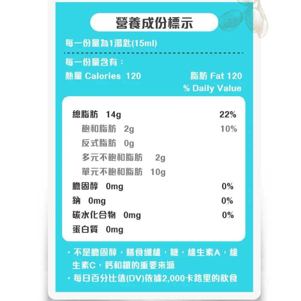 100%Pure特選純橄欖油:油質金黃色,穩定性高,因此比其它食用油更適合高溫烹飪及油炸,也適合口感淡的喜好調製成沙拉醬、烤肉醬、或醃製肉品等用途。