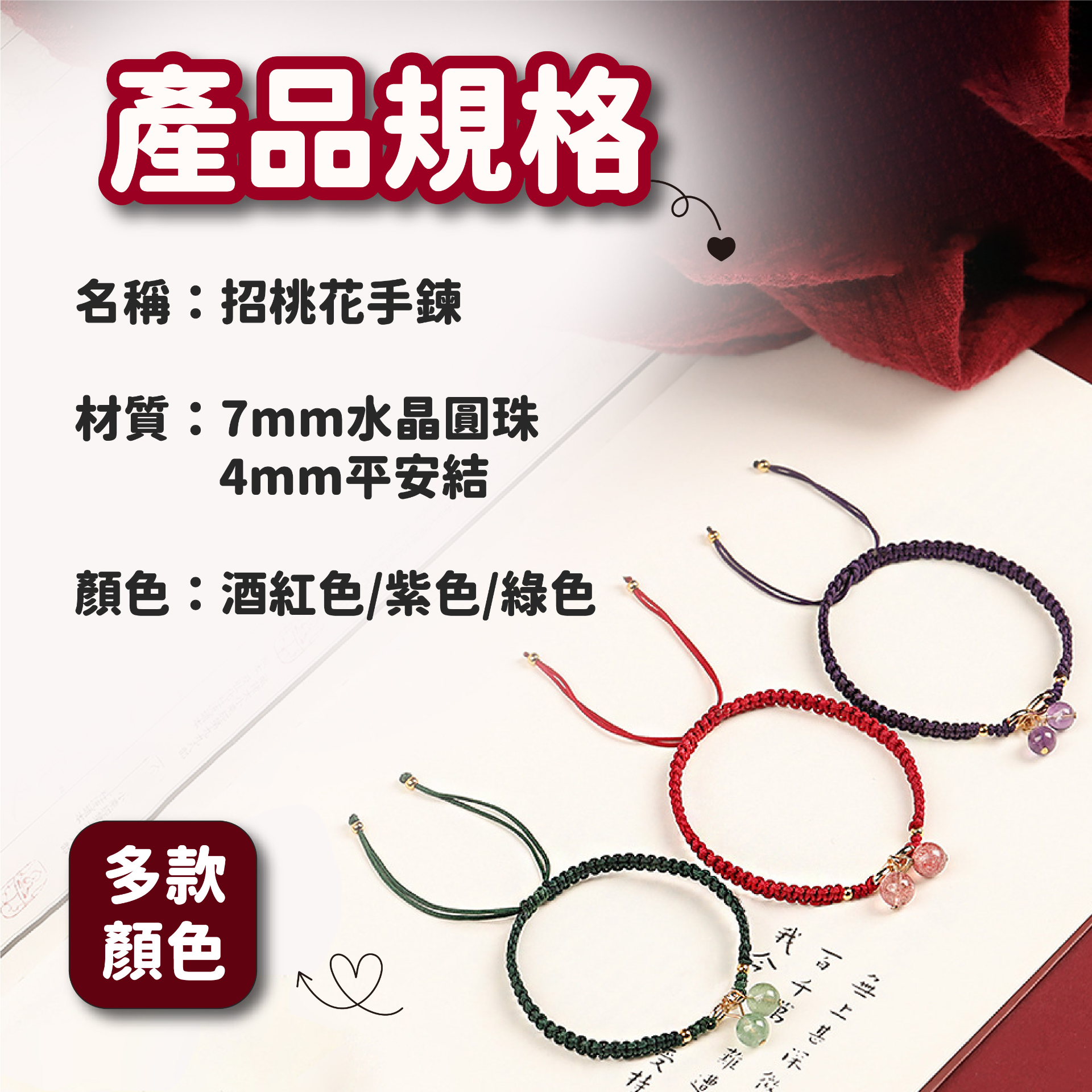 【商品名稱】:草莓晶編織手鍊
