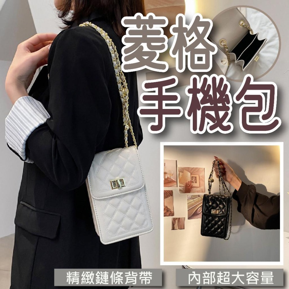 【台灣出貨品質優】手機包 菱格手機包 手機包斜背 小香包 小方包 肩背包 單肩包 斜背包 側背包 單肩包 鏈條包 小廢包