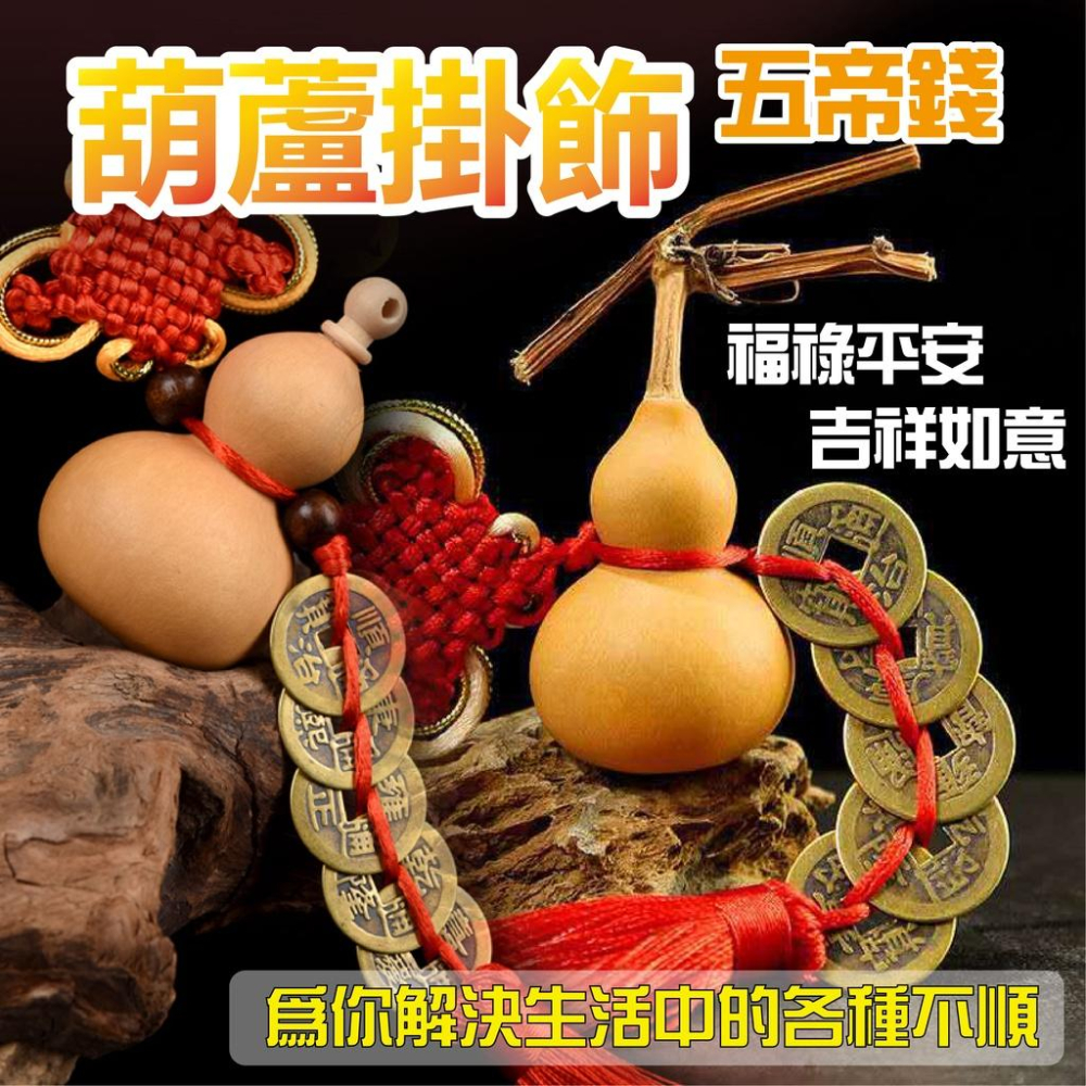 葫蘆 葫蘆五帝錢 天然葫蘆 五帝錢葫蘆 小葫蘆 葫蘆吊飾 風水擺件 開光 招財 擋樑 保平安 化煞 風水 鎮宅 葫蘆 葫蘆五帝錢 天然葫蘆 五帝錢葫蘆 小葫蘆 葫蘆吊飾 風水擺件 開光 招財 擋樑 保平安 化煞 風水 鎮宅 【商品規格】 ▲商品名稱 :天然葫蘆五帝錢(金邊中國結) ▲主要材質:天然葫蘆+純黃銅錢+金邊中國結吊繩 【溫馨提醒】 ▲每一只葫蘆都天然種植,所以形狀與尺寸各自不同,但是並不影響葫蘆風水功效 ▲銅錢皆依照帝號順序排列 ▲未開口葫蘆(龍頭)=>有些樹枝長短不一 葫蘆、五帝錢在風水中可具如下幾種功用: 1.有化解疾病,增強身體健壯的作用。可將幾個葫蘆或五帝錢用紅繩拴好,掛於床頭或者宅居之天醫吉位,也可掛於宅居流年飛星吉位即可。 2.有促進家庭和睦,增加夫妻緣分,加強生育能力的作用。 3.有增福增壽,有利於財運的作用。 4.有化解房子的煞氣,化煞擋煞的作用。 5.有化解橫樑壓頂的作用。 6.葫蘆或五帝錢掛在病者的睡床前或擺放在病者的睡側,有除病的作用。葫蘆掛在大門外,則有保房子裡面的人平安的作用。 💰 長形五帝錢 💰 五帝錢:順治、康熙、雍正、乾隆,嘉慶五個皇帝為清代最興旺之時期,利用古代旺世朝代的皇帝鑄造的仿古幣,來興旺自身的財運。 *以上內容僅供參考* 全館商品滿99元超商取貨→免運費 💰 運費優惠看這邊 💰 OK超商【滿$99→免運費】 萊爾富超商【滿$199→免運費】 取活動免運券網址如下 https://shopee.tw/m/free-shipping 📌📌即日起--- 為符人力及包裝成本,此賣場合併所有訂單需消費滿88元(不含運)或接近才會印單出貨,未滿88元賣場有權取消訂單 (宅配或郵寄除外),請各位大大見諒。 購買須知 📶下單前請先確認價格與庫存,以免無法出貨 🚚本站商品約需2~5天,請耐心等候 📷因攝影或電腦顯示可能有色差,在意者慎拍 📣依《消費者保護法》規定,消費者享有商品簽收翌日起算七天之鑑賞期,期間申請退購,欲退購者請於七日內提出,逾期恕不受理。 ⚠️注意⚠️ 猶豫期並非試用期,故退回的商品必須是全新的狀態且完整包裝(含商品本體、配件、贈品、保證書、原廠包裝及所有附隨文件或資料),切勿缺漏任何配件、自行拆解商品、或損毀原廠外盒。如有遺失、毀損或缺件,可能影響您退貨的權益,也將依照損毀程度扣除為復原所需之整新費用。 🔥使用超商取貨,商品到店後會以簡訊通知蝦皮也會有推播通知,並請於7日內取貨 🔥請買家為自己自標的商品負責, 🚫嚴禁不取貨🚫 【關於退換貨】 鑑賞期非試用期,若已拆封即無商品鑑賞期。我們都是透明包裝,若顏色不符請勿拆封,鑑賞期內都是可以退回。 📣請勿以評價代替溝通📣 任何問題歡迎聊聊,勿以評價代替溝通🙏
