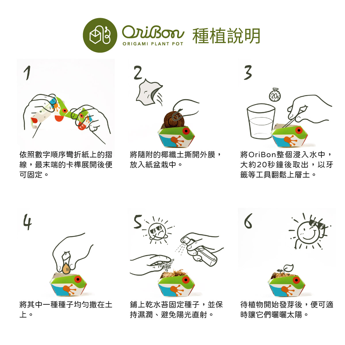 2.植物成長至一定程度後,建議移植到較大的盆栽,原本的紙盆栽可保留重複使用。