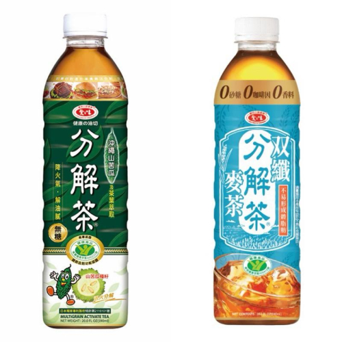 愛之味健康油切分解茶無糖  1. 混和多種茶葉,以完美比例呈現多層次濃厚茶香,好喝順口不苦澀 2. 日本獨家專利技術萃取沖繩苦瓜,保留苦瓜多種好處,更去除了苦味。 3. 每瓶8-11g的膳食纖維,提供一天所需膳食纖維的50%,能促進腸道溫和蠕動, 有效做好體內環保。 4. 衛署健食字第A00225號 保健功效敘述: (一)調節血脂功能認證: 1.有助於降低血中低密度脂蛋白膽固醇。 2.有助於增加血中高密度脂蛋白膽固醇。 (二)不易形成體脂肪功能認證: 經動物實驗結果證實:有助於減少體脂肪之形成。在嚴謹的營養均衡與熱量控制,以及適當的運動條件下,適量攝取本產品有助於不易形成體脂肪。 建議攝取量:建議每日飲用 590 毫升。 愛之味分解茶雙纖麥茶 590ml 1. 0咖啡因的機能茶,具健康食品認證(不易形成體脂肪) 2. 無糖,無香料、無咖啡因、無負擔,適合全家人飲用 3. 2種膳食纖維,每瓶10公克,促進腸道蠕動,有助於體內環保 4. 嚴選澳洲二條大麥,經焙煎釋放出麥茶微甜口感及麥味焦香5. 使用沖繩久米島海洋612公尺深處的「球美の水」,水質純淨、所含的礦物質有助於人體健康維持。