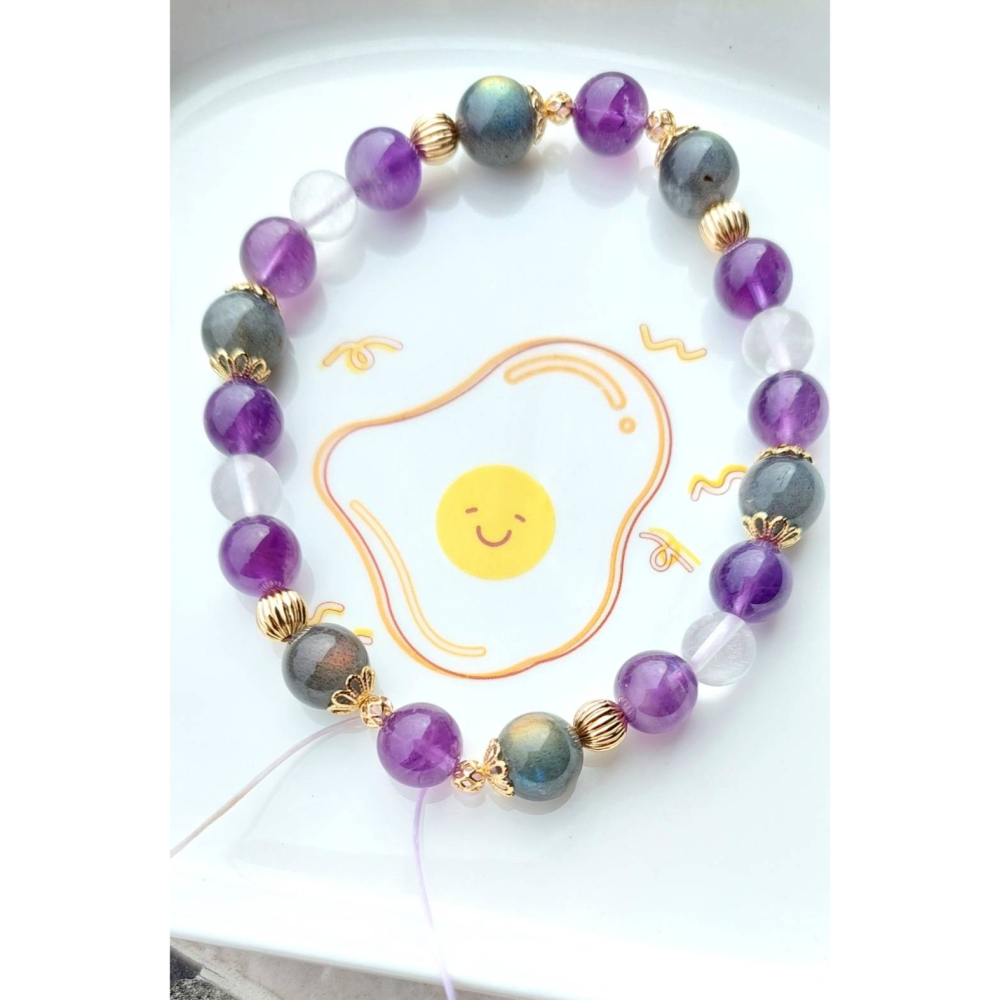 手圍20(20~21CM),紫水晶、白水晶、彩光拉長石
