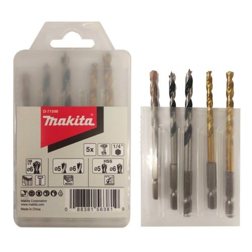 MAKITA 牧田 D-71598 BIT綜合5支鑽頭組 六角柄鑽頭 5mm/6mm 鑽尾 水泥鑽 木工鑽 鐵鑽