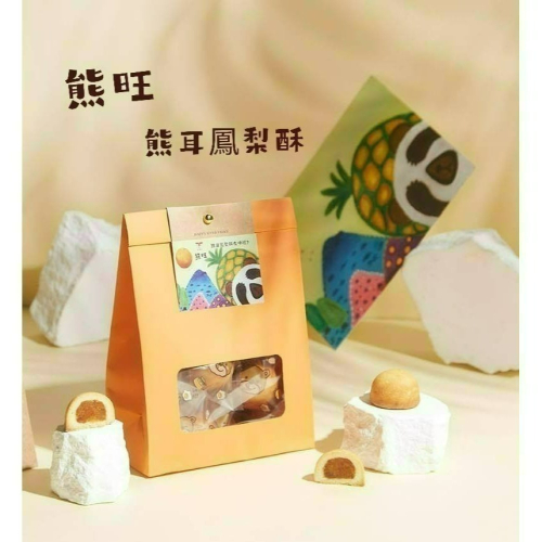 鳳梨酥是台灣著名伴手禮產品,深受大眾喜愛,創作以可愛討喜的熊耳造型的鳳梨酥,大小適中恰好不過量,更方便入口,女仕們更可吃得優雅不掉屑,無論大人小孩都喜歡的茶點。