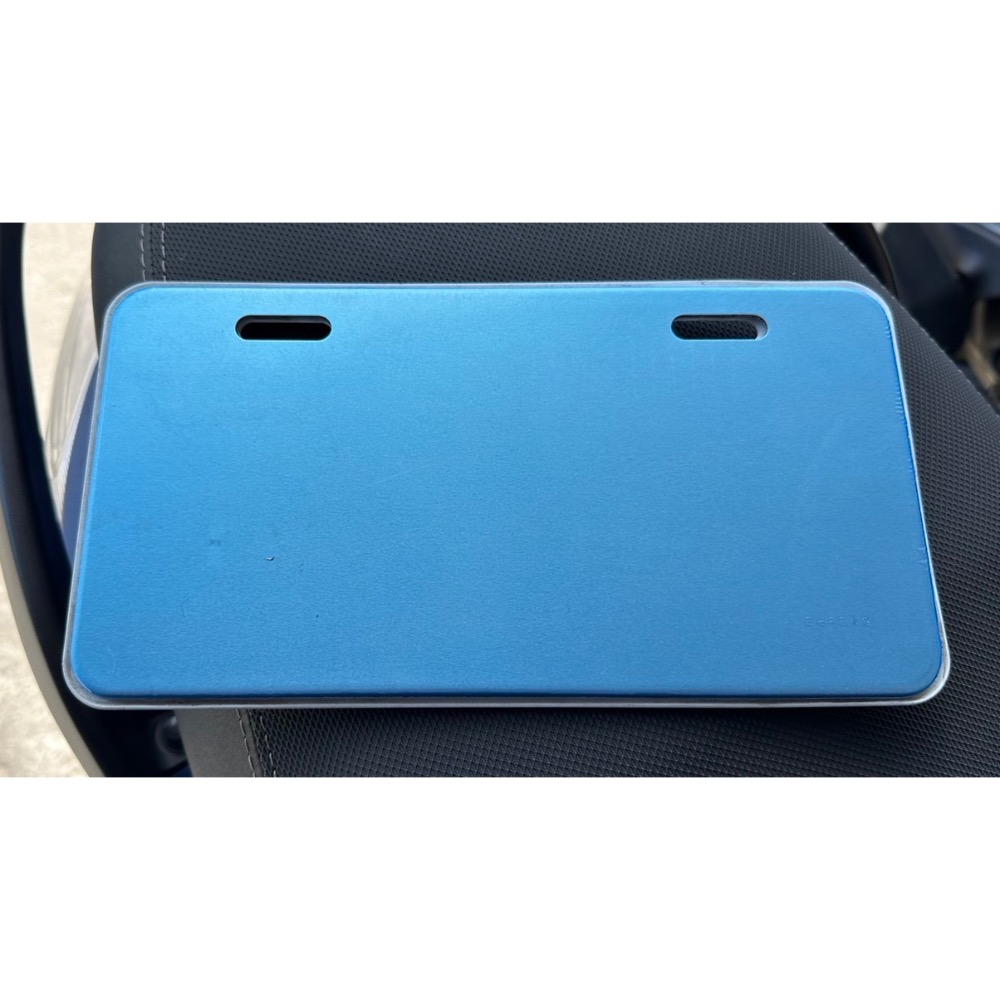 防止車牌撞歪變型,圖片中籃色是保護膜可自行決定撕下