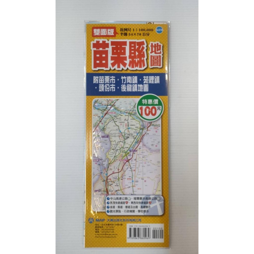 ★橫式半開54*78公分 ★附苗栗市、竹南鎮、苑裡鎮、頭份市、後龍鎮地圖 ★中山高速公路、福爾摩沙高速公路 ★西濱快速道路、東西向快速道路 ★台鐵、高鐵及省道、縣道、鄉道標示 ★觀光區、行政機關、學校標示 比例尺-1:100000 實體店面同步經營 商品門市同步販售中 下單前請先詢問庫存狀況 商品相關問題歡迎聊聊詢問