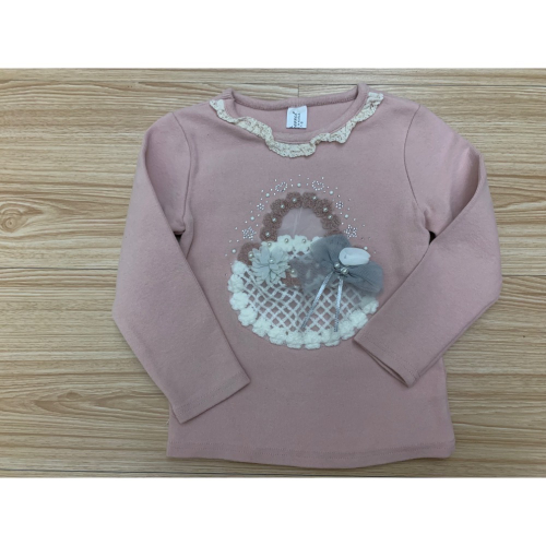正韓 Pierrot 純棉彈力厚磅花籃蕾絲網紗上衣