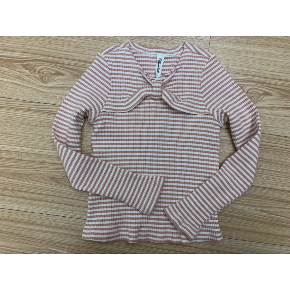 香水娜娜 兒童女童幼兒蝴蝶結領坑條針織上衣