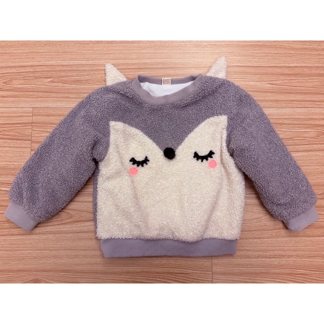 二手很新 兒童幼兒女童男童 可愛立體狐狸加絨加厚毛毛上衣 約100cm 保暖童裝