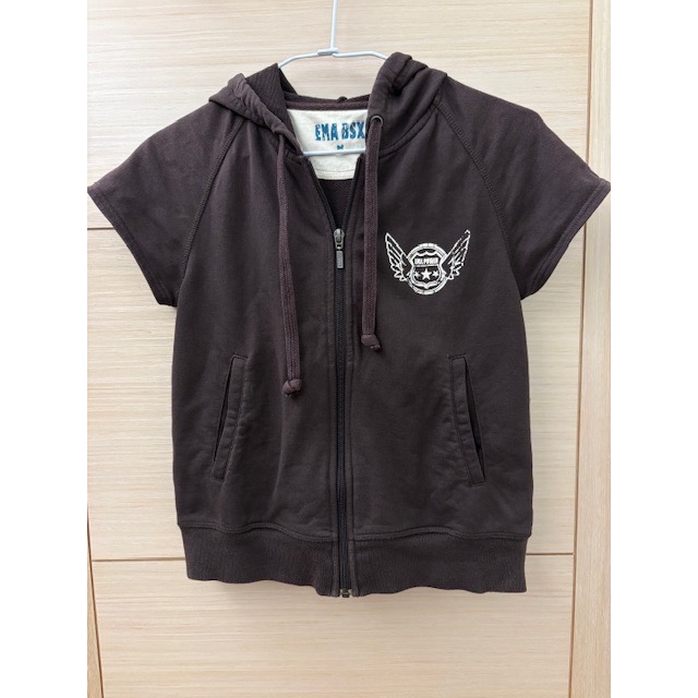 二手少穿 EMA 徽章印花毛圈休閒連帽外套 連帽上衣 小外套