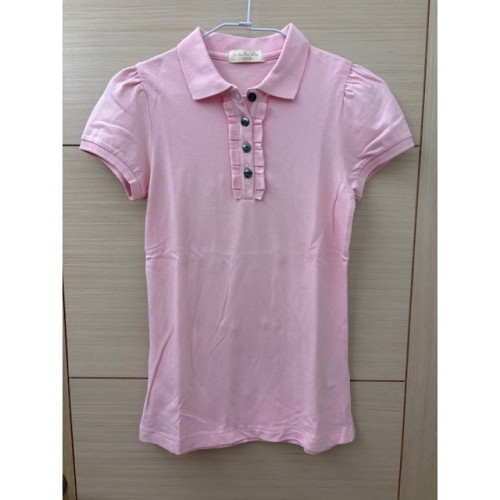 NET 滾荷葉邊開襟肩抓皺polo衫 公主袖 上衣