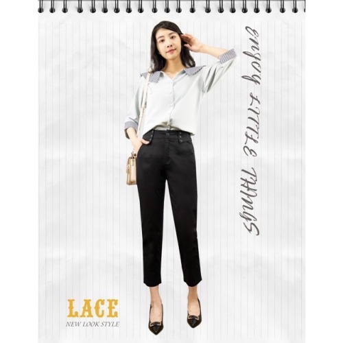 專櫃 Lace 腰部釦飾休閒八分褲