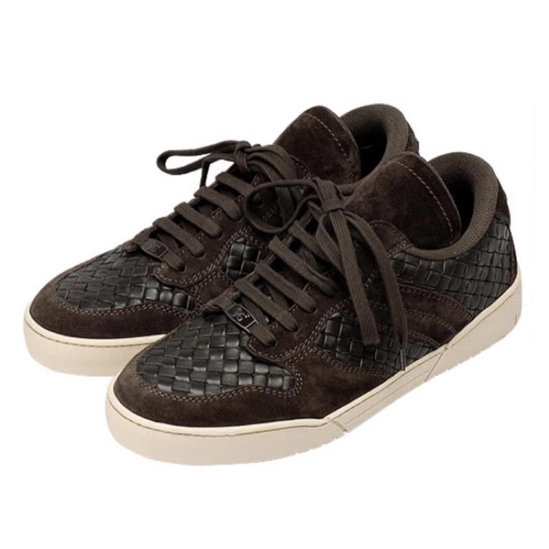 ❤️2days國際美妝❤️限量義大利手工BOTTEGA VENETA經典編織小羊皮X麂皮休閒鞋(深咖啡)