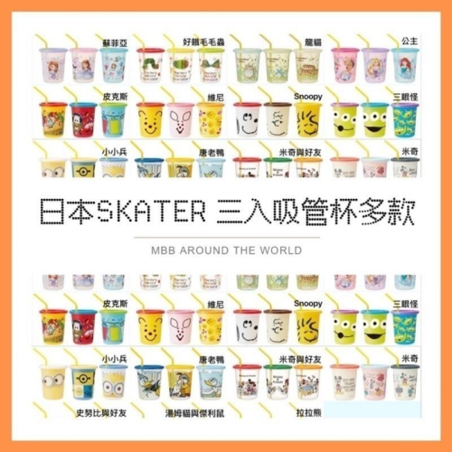 日本SKATER 防漏吸管杯附蓋三入組,