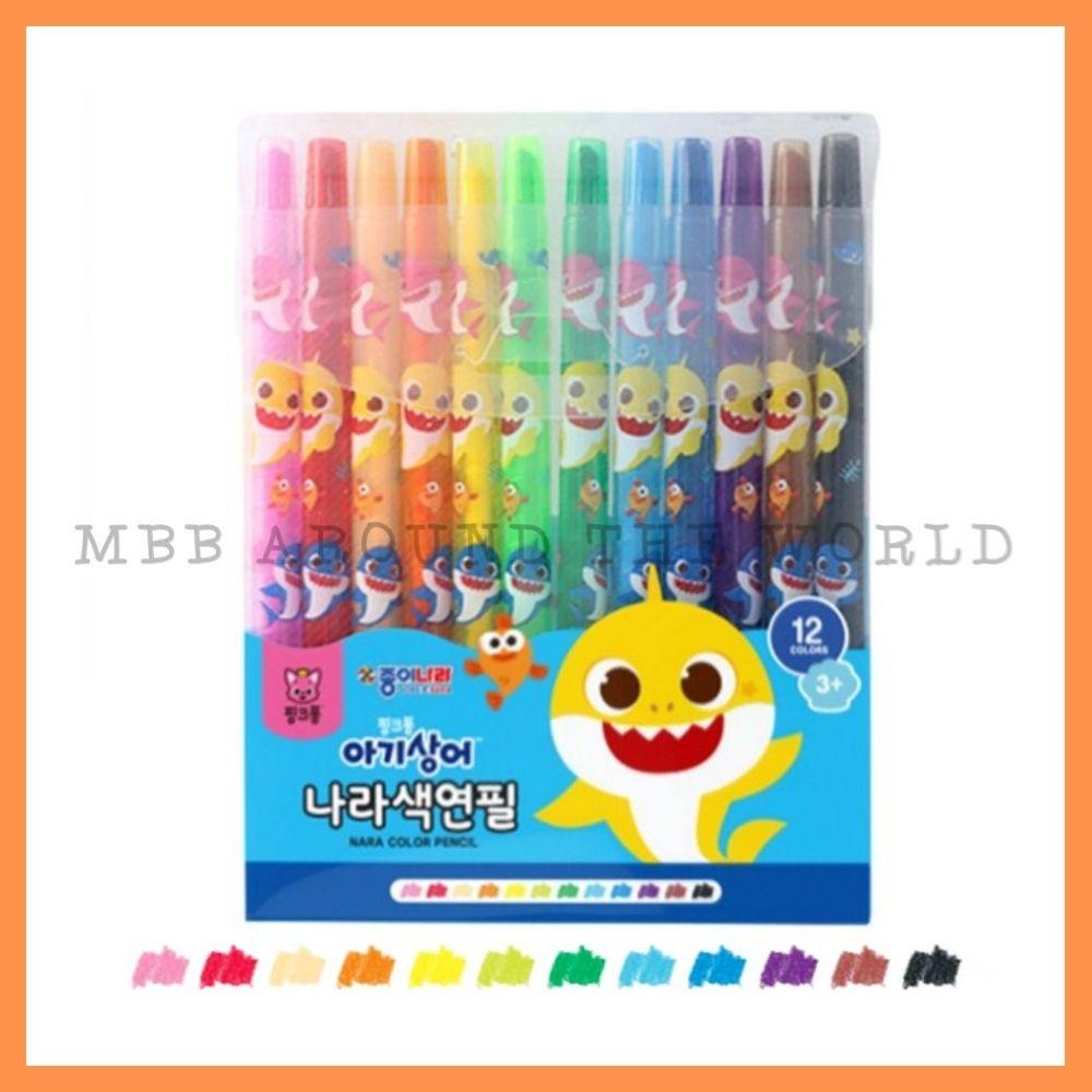 [MBB🇰🇷現貨附發票]韓國 BABYSHARK 旋轉蠟筆12色附收納盒 鯊魚寶寶