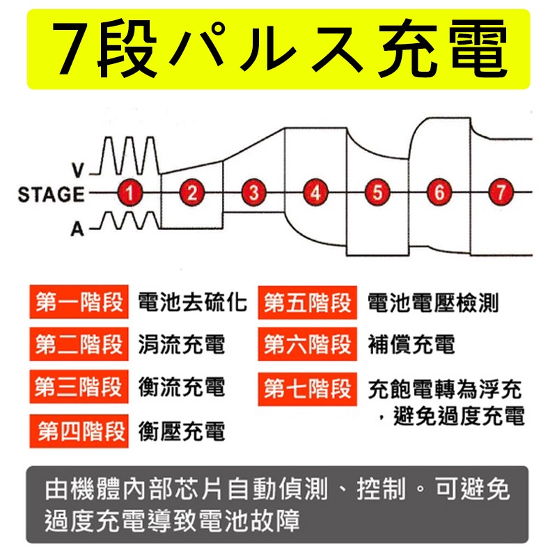 • これは、7つの充電ステージを備えた全自動バッテリー充電器です。