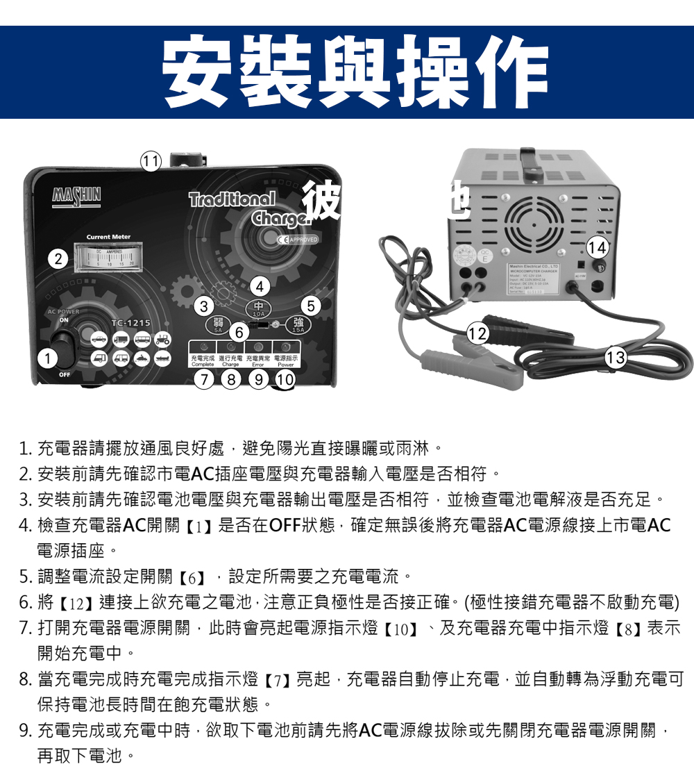 ◎ TC系列採用微電腦全自動多段充電控制,擁有3段充電電流適合各類汽機車電池充電使用。