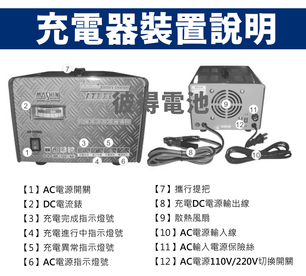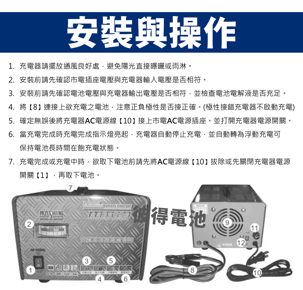 ◎ 麻新微電腦全自動充電控制技術,保護電池平穩吸收、不溫昇、不過量充電,達到電池應有飽和度。