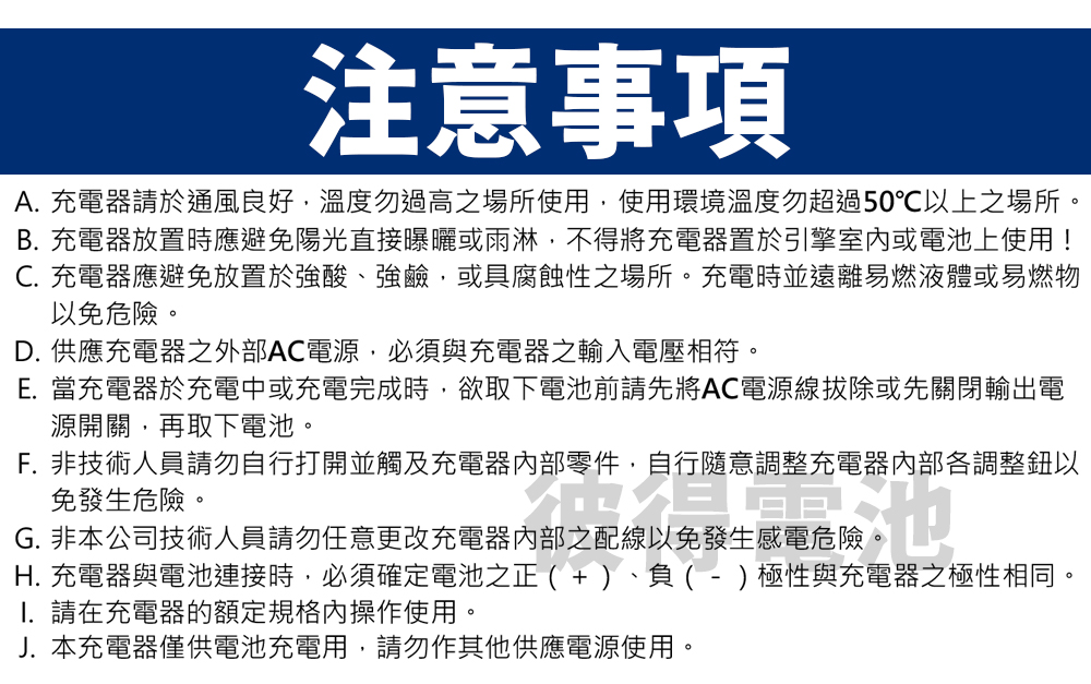 ◎ 微電腦智慧型均時衡化充電(均衡充電功能):以每單極DC2.4V~DC2.5V自動調節充電電壓值,讓新舊電池的每個單極多可達到100%飽和充電。