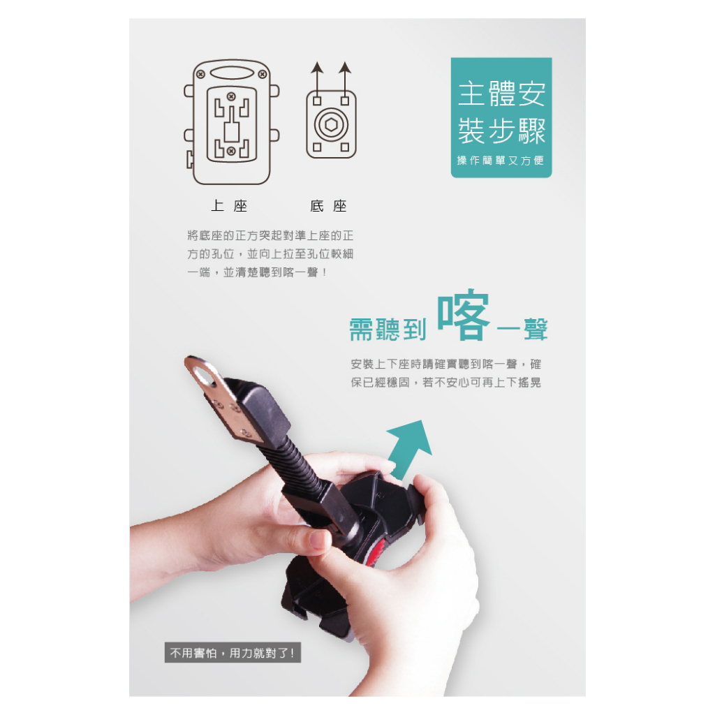 3.組合式設計,下車只要喀一聲,手機與上座馬上帶著走