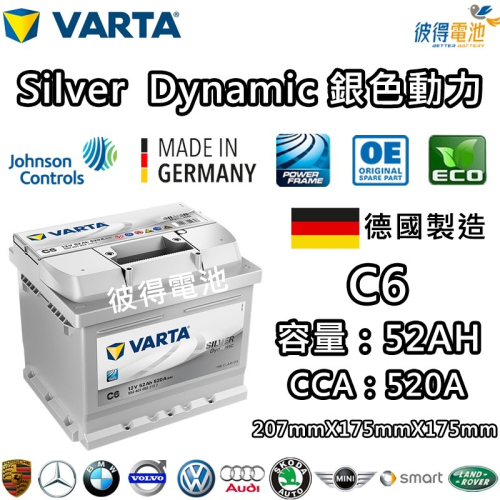 德國VARTA華達 C6 52AH 銀色動力 汽車電瓶 LBN1 54801 適用新SX4 Citigo