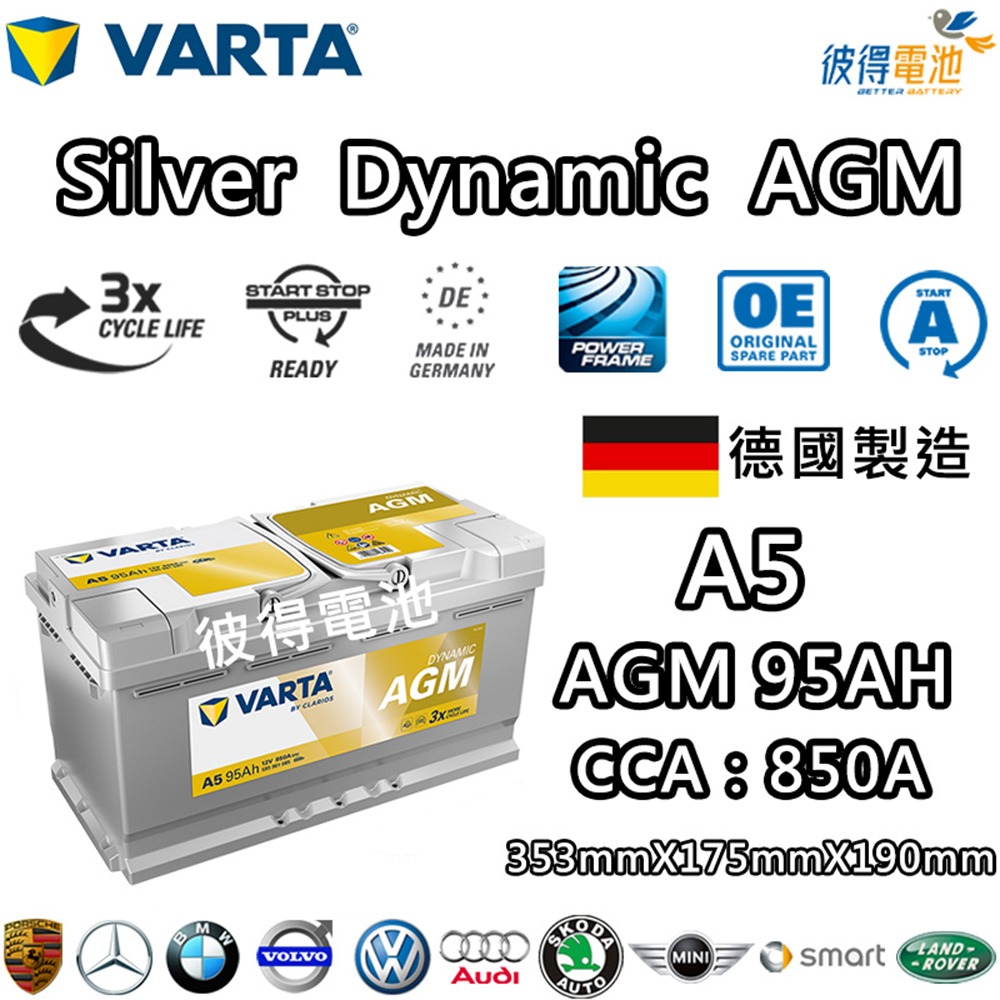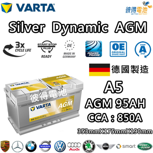 德國VARTA華達 A5 G14 AGM 95AH LN5汽車電瓶 怠速熄火車 Start-Stop 德國製造電池